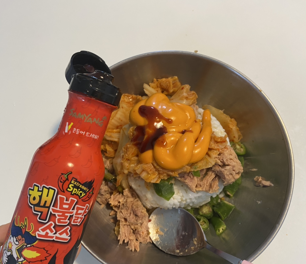 매콤함 + 참치와 불닭마요네즈의 고소함으로 말모 존맛탱 ㅎㅎ