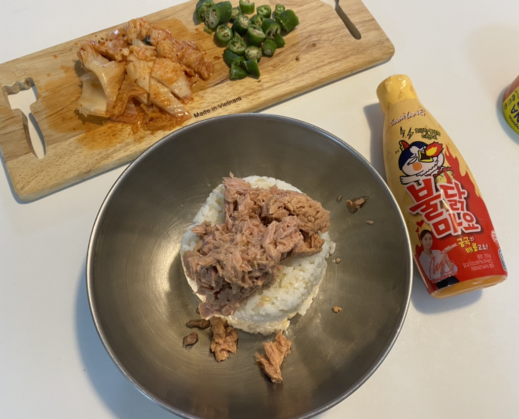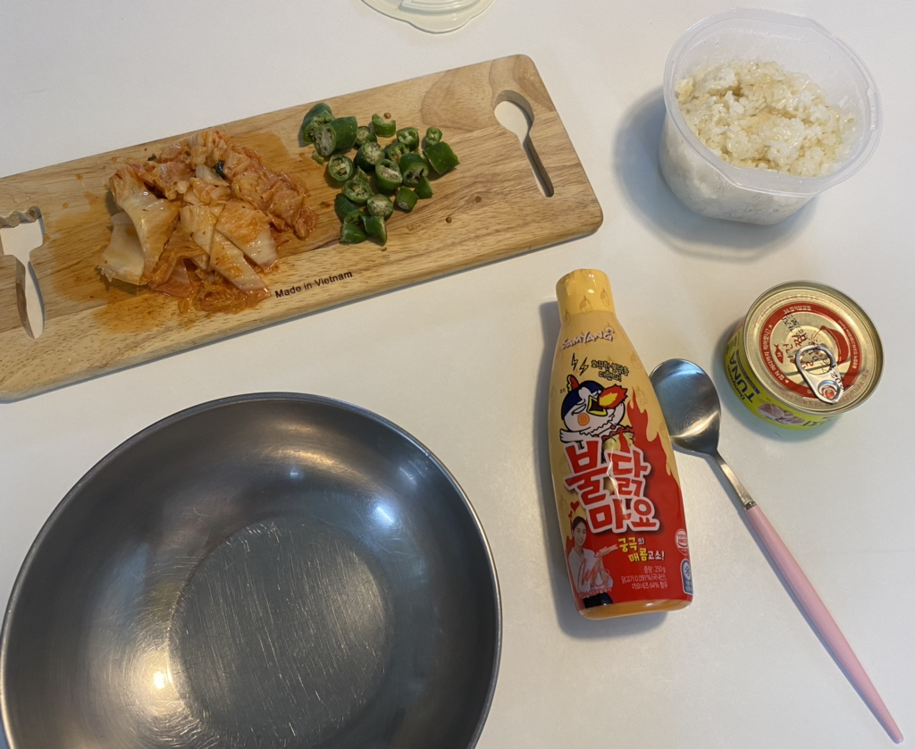 준비물 : 밥, 청양고추, 김치, 참치, 불닭마요