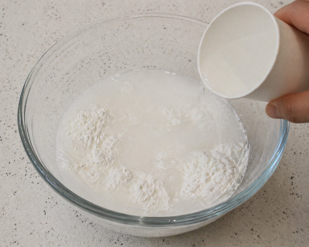2. 전분 6-10스푼에 물 종이컵 1컵 섞어줘