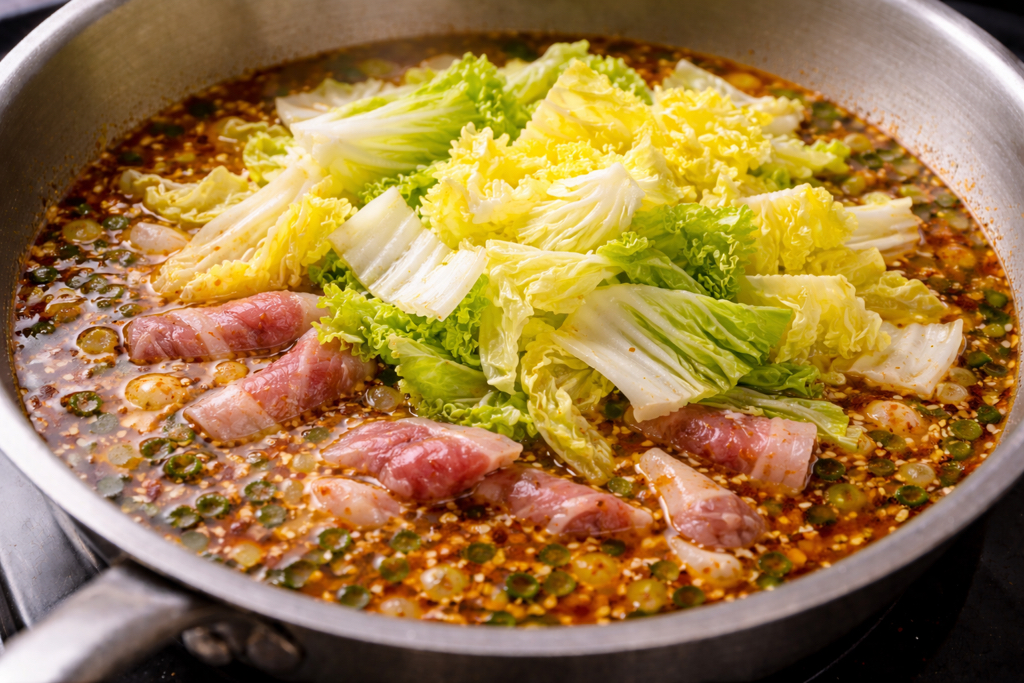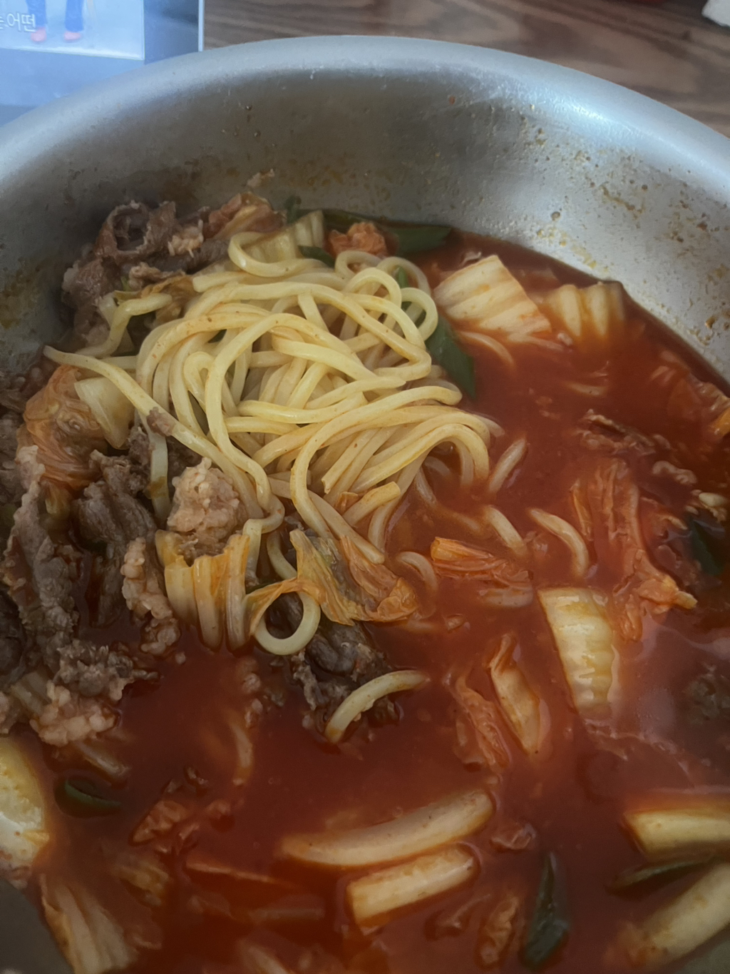 4. 고기랑 야채를 넣어 . 차돌박이 대패 삼겹 둘다 해봄