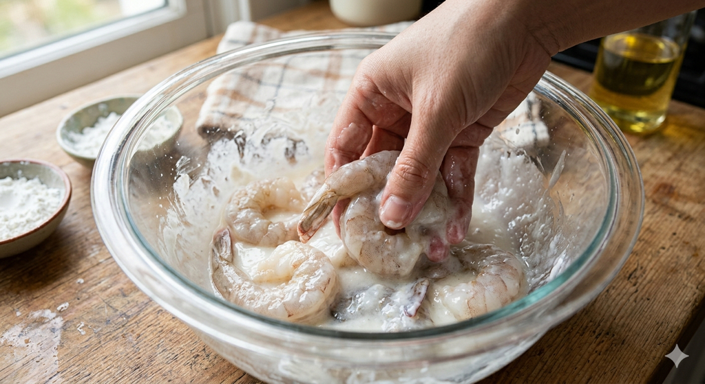 준비물: 냉동새우, 마요네즈, 설탕, 식초or레몬즙, 전분
