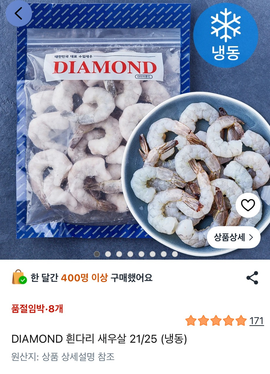 1. 냉동새우 해동 ( 난 짬뽕이랑 먹을때 다섯마리해)