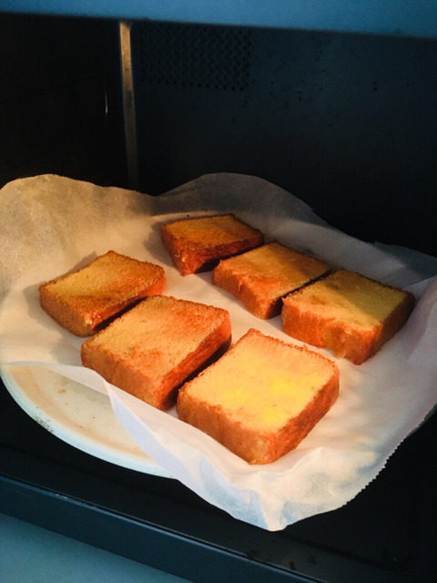 그래서 카스테라를 식빵처럼 구우면 바삭해질까 하고 구워봤는데 너무 맛있어서 나만먹기아까워서 공유해!