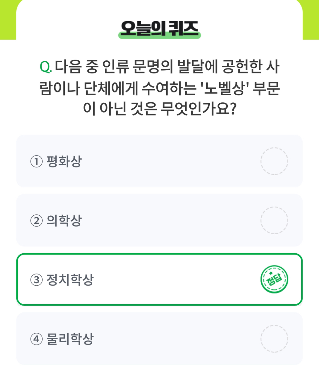 5/20 농협 올원뱅크 디깅퀴즈 작성자하니 WA-R-R|작성시간25.05.20|조회수311 목록 댓글 4 글자크기 작게가 글자크기 크게가 출처 : 여성시대 하니 WA-R-R 다음검색 현재 게시글 추가 기능 열기 북마크 공유하기 신고 센터로 신고 댓글 댓글 4 댓글쓰기 답글쓰기 댓글 리스트 작성자작고소중한김희진 | 작성시간 25.05.20 고마워! 작성자뭐라카누는커피 | 작성시간 25.05.20 고마워 작성자Love Lies Bleeding | 작성시간 25.05.20 고마유ㅓ!!! 작성자무한상사유부장 | 작성시간 25.05.20 고마워! 댓글 전체보기