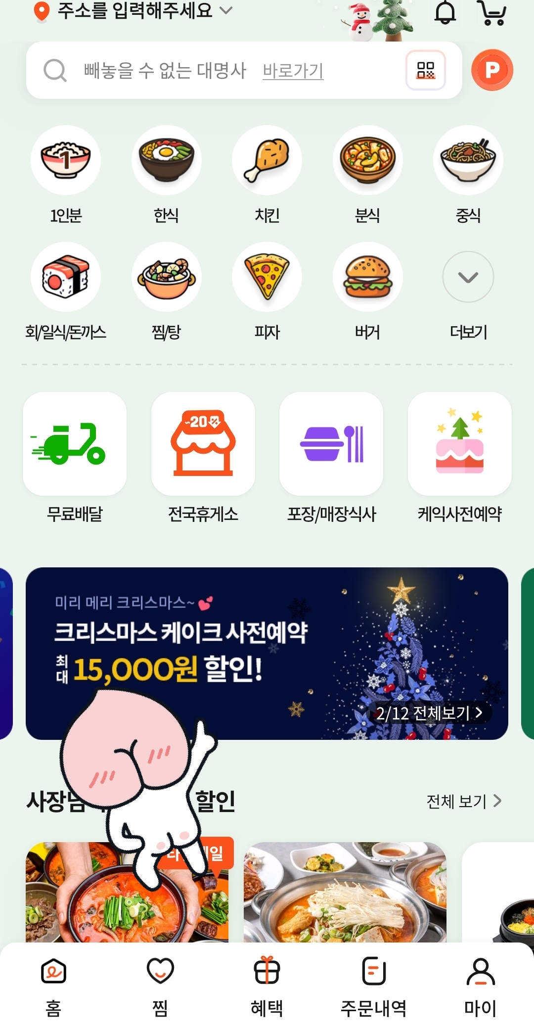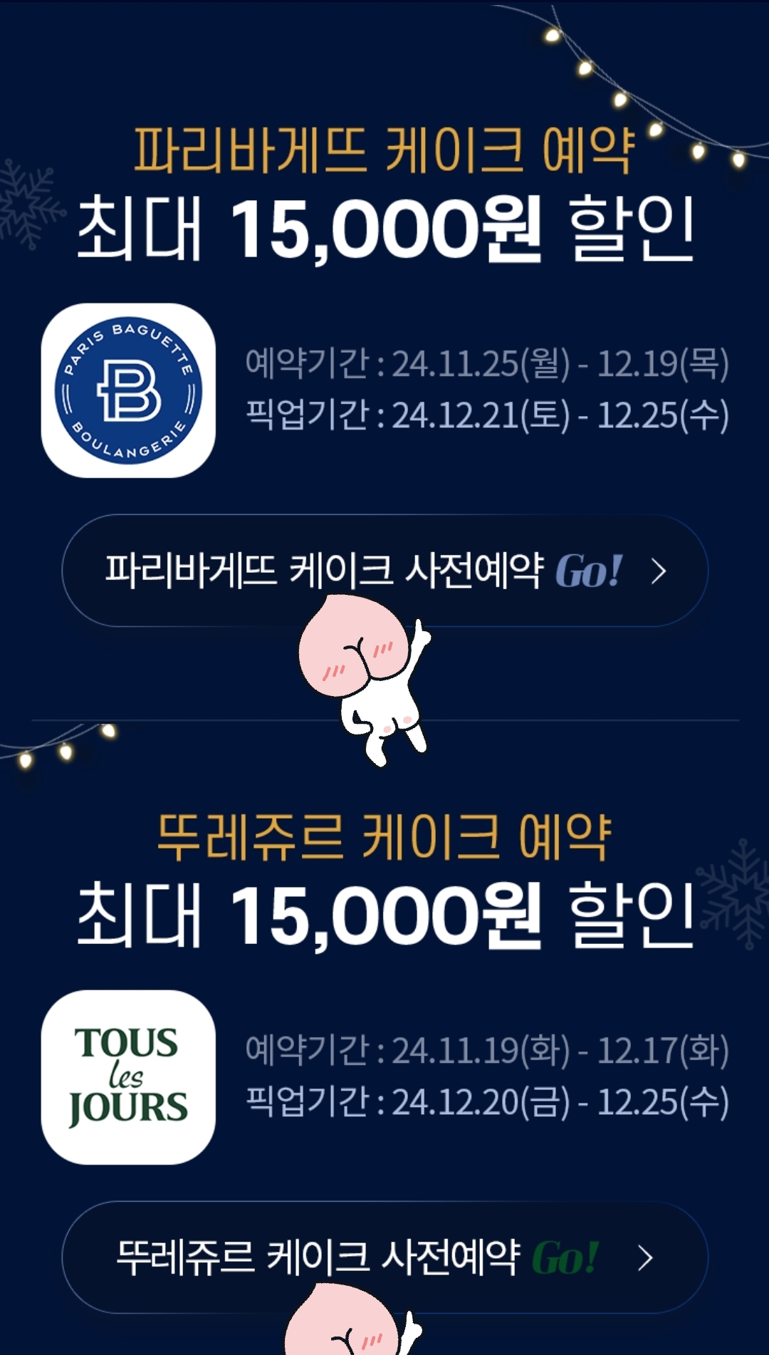 1) 로그인하고 배너에 크리스마스 케이크 사전예약 누르기