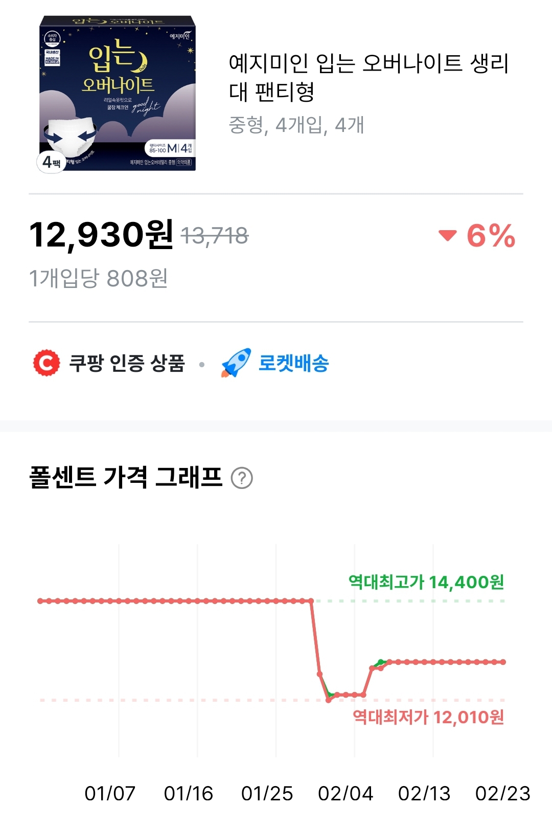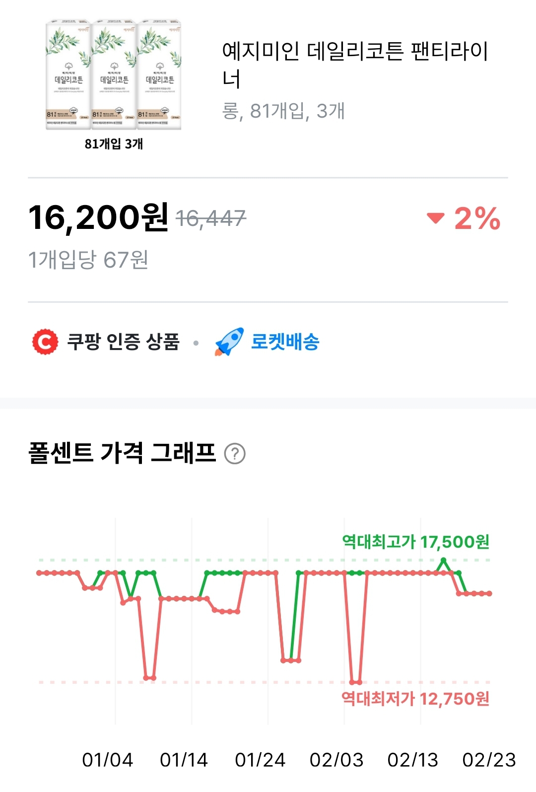 팬티라이너 71개 3팩 역대 최저가 12,750원
