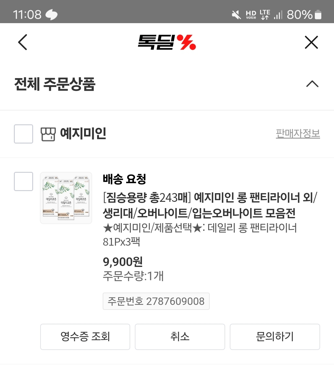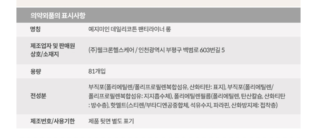 팬티라이너 81개 3팩 9,900원 (1개당 40원)