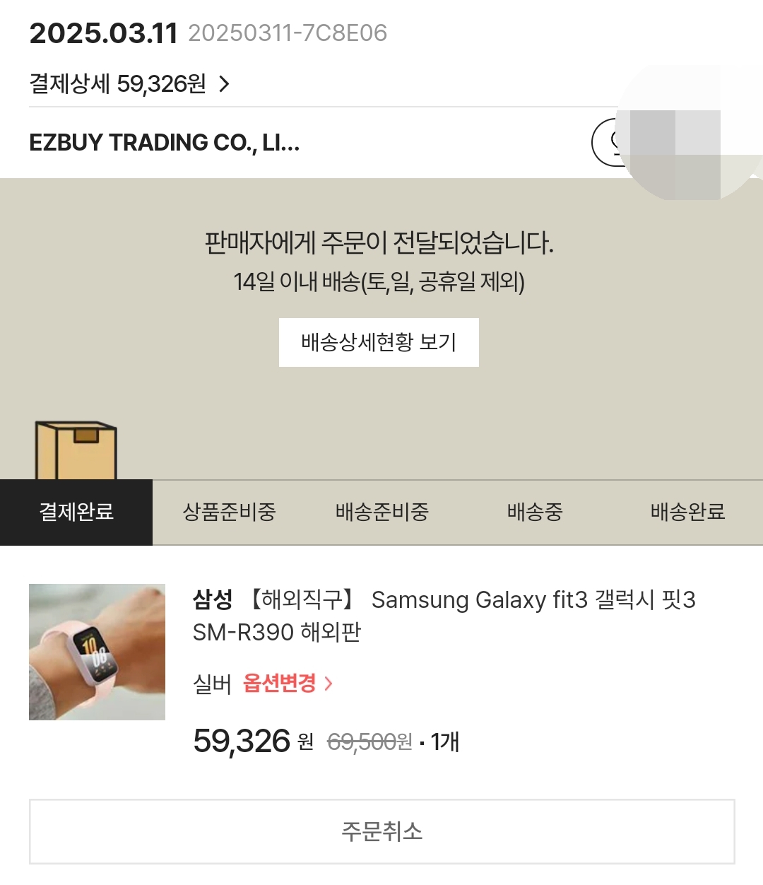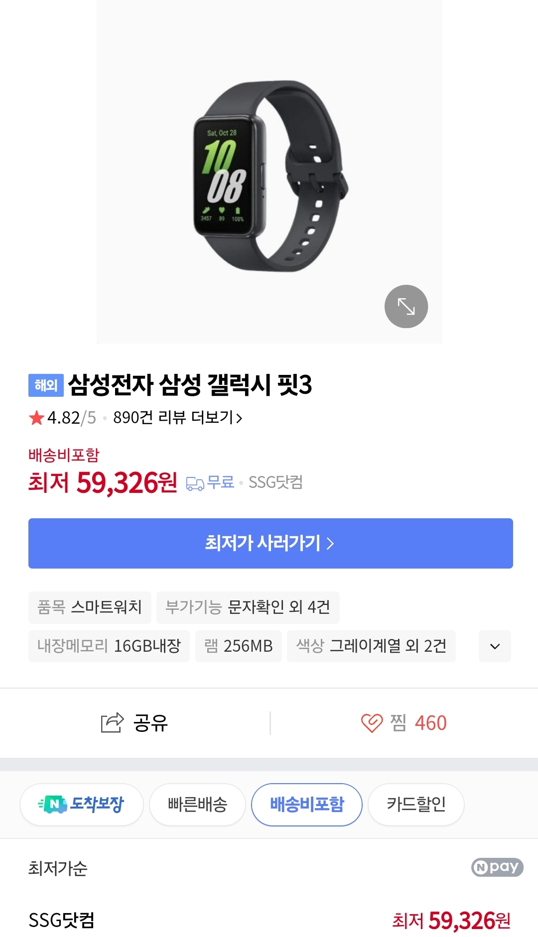 ssg닷컴 갤럭시핏3 글로벌판 59326원