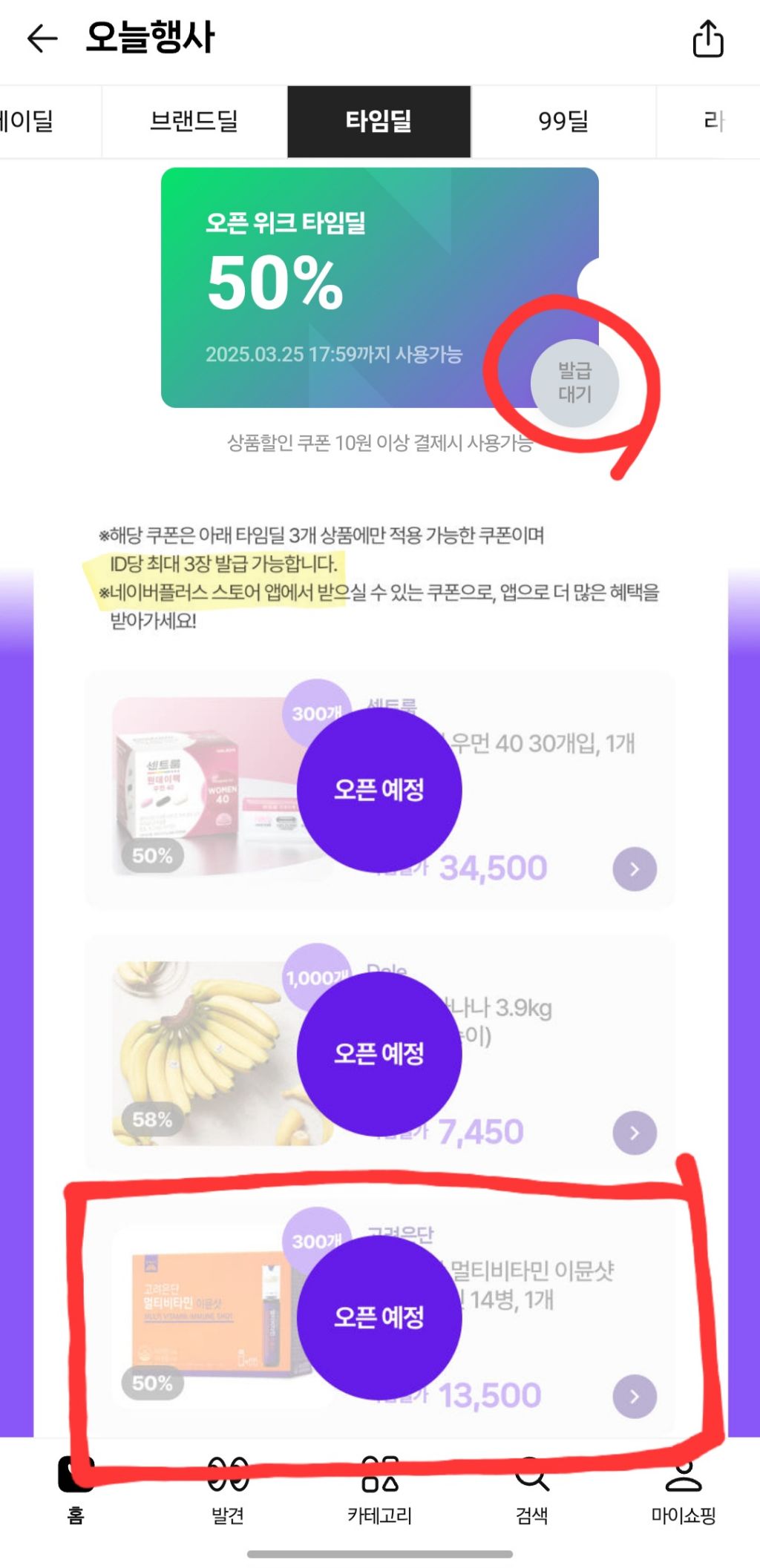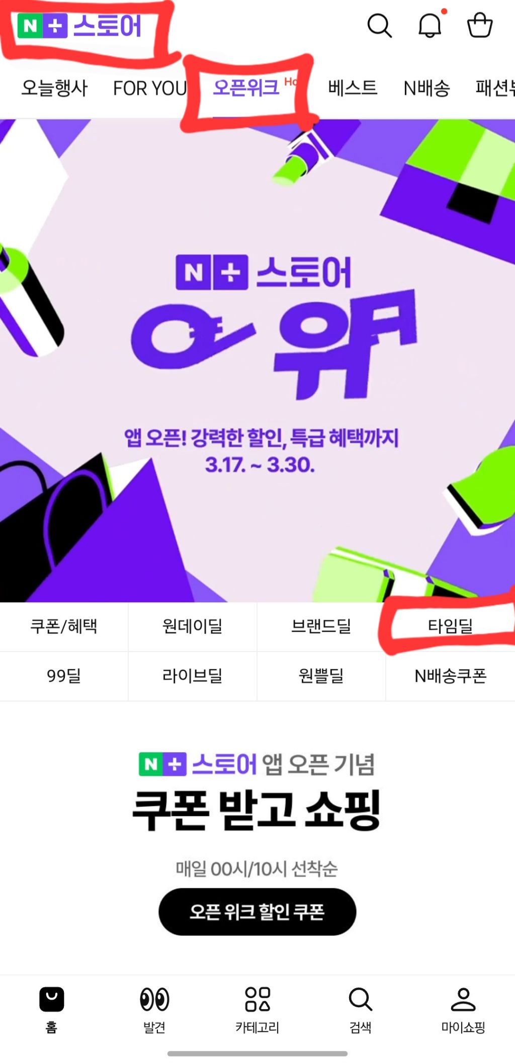 오픈위크 탭 > 타임딜 눌러야함