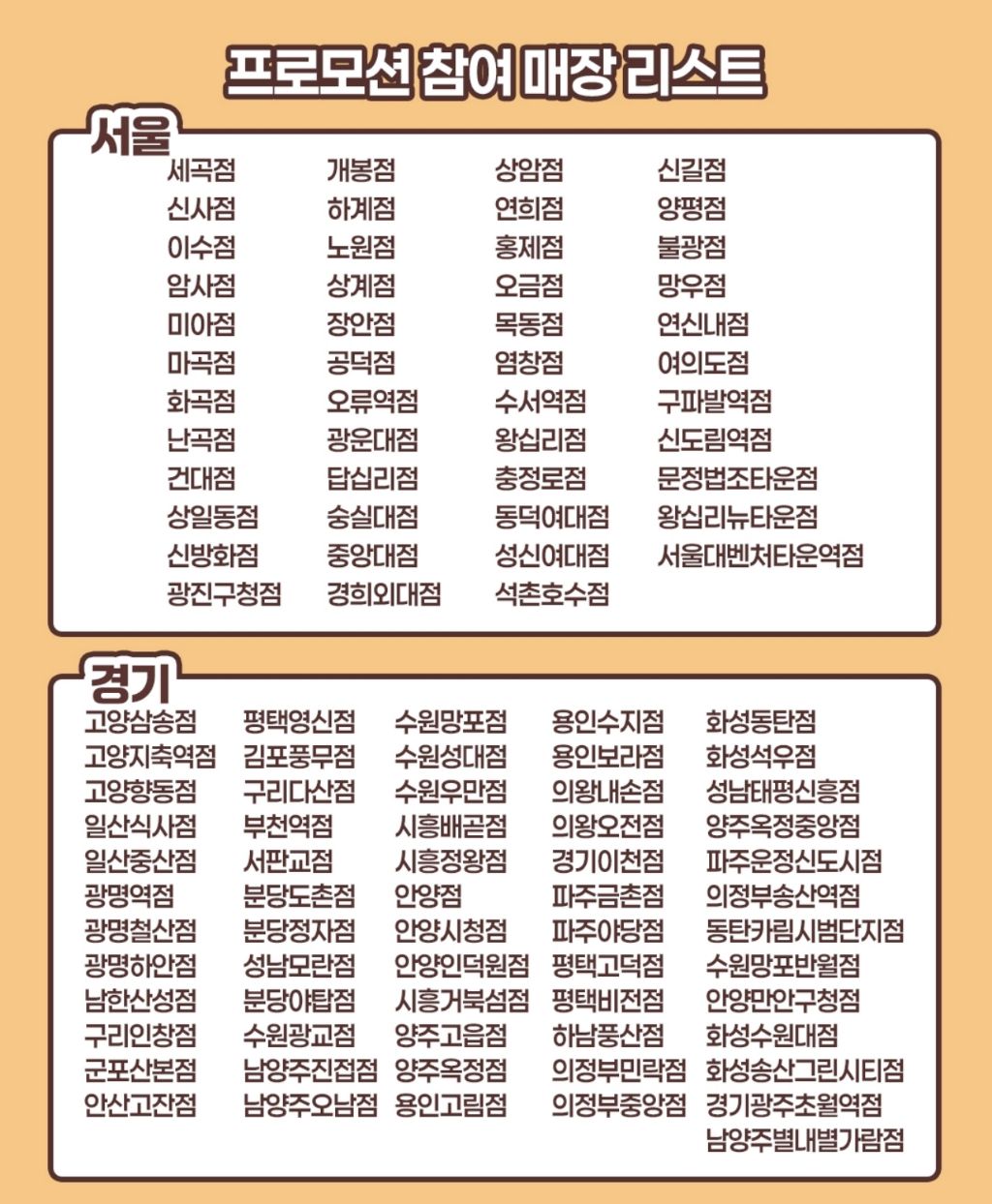 • 본 이벤트는 해당 게시물에 기재된 매장에 한하여 진행됩니다.