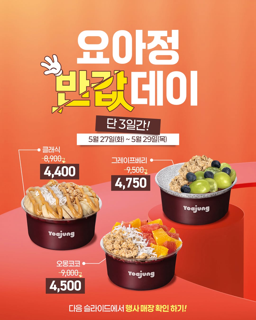 요아정 반값데이 아사이볼 3종 50% 할인 (27일~29일까지 3일간) 작성자인절미찹쌀떡|작성시간25.05.28|조회수11,044 목록 댓글 10 글자크기 작게가 글자크기 크게가 출처: 여성시대 인절미찹쌀떡https://www.instagram.com/p/DJ_jisWv1tS/ Instagram에서 이 게시물 보기 요아정 | 요거트 아이스크림의 정석(@yoajung_official)님의 공유 게시물 다음검색 현재 게시글 추가 기능 열기 북마크 공유하기 신고 센터로 신고 댓글 댓글 10 댓글쓰기 답글쓰기 댓글 리스트 작성자배찬승 | 작성시간 25.05.28 100명한정 ㅅㅂㅋㅋㅋ장난하냐 작성자껌정전화기 | 작성시간 25.05.28 100명 한정 ㅋㅋㅋ 작성자망고리치젤리 | 작성시간 25.05.28 3일동안 100명.. 작성자베이지색가디건 | 작성시간 25.05.28 흠 근데 먹어봤는데..한약맛남ㅠ하와이에서 먹은 그맛이 아니니 주의 작성자전지혀어언 | 작성시간 25.05.29 이럴거면 행사 하지 말든가ㅋ 100개가 뭐야 전화하고 된다해서 갔는디 마감이래ㅡㅡ 댓글 전체보기