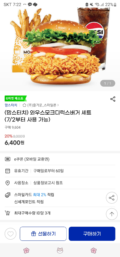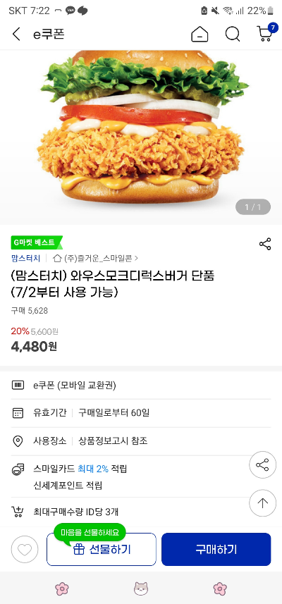 유효기간 60일 / 1인당 3장까지 1장 구매가능해~