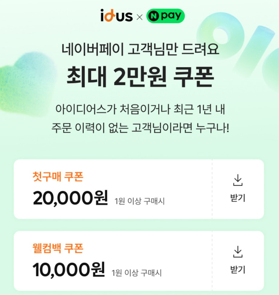 [스크랩] 아이디어스 첫구매 2만원 / 웰컴백 1만원 쿠폰 작성자acute|작성시간25.10.11|조회수4,491 목록 댓글 26 글자크기 작게가 글자크기 크게가 수익성 링크 아님 사진 누르면 이동함뭐 샀는 지 공유도 하자~~ 다음검색 스크랩 원문 : 우리 동네 목욕탕 현재 게시글 추가 기능 열기 북마크 공유하기 신고 센터로 신고 댓글 댓글 26 댓글쓰기 답글쓰기 댓글 리스트 작성자너는내가시마저사랑해야할 | 작성시간 25.10.11 호박인절미!! 고마워 만원할인받음ㅎㅎ 작성자헴스털 | 작성시간 25.10.11 첫구매쿠폰 유효기간지나면 못쓰는거겟지? ㅠㅠ고객센터말해보랴는게 작성자룰루랄랄ㄹㄹㄹ | 작성시간 25.10.11 우왕 고마워 손수건 샀다! 작성자쌉치라 | 작성시간 25.10.12 네이버페이 아니라도 되네.? 걍 일반카드로 결제햇어 ㅋㅋㅋㅋ 작성자모시모시에 | 작성시간 25.10.12 보니밤조림 샀어ㅎㅎ 댓글 전체보기