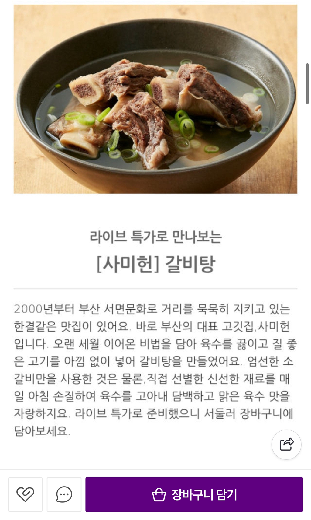 [컬리N마트] 사미헌 갈비탕 1kg x 3팩 29,700원 작성자남한기재|작성시간25.12.29|조회수4,096 목록 댓글 41 글자크기 작게가 글자크기 크게가 출처: 여성시대 남한기재사미헌 갈비탕 내일 오전까지? 같은데정확히 언제까지인지는 모르겠다한 팩에 9,900원이면 싸다죠 ㄷㄷhttps://naver.me/FFaMEL69이런 상품 어때요? [라이브특가][사미헌] 갈비탕 * 3팩컬리N마트shopping.naver.com 다음검색 현재 게시글 추가 기능 열기 북마크 공유하기 신고 센터로 신고 댓글 댓글 41 댓글쓰기 답글쓰기 댓글 리스트 작성자존나잼민이 | 작성시간 25.12.30 안돼 이제보다니ㅠ 작성자꼬질망곰이 | 작성시간 25.12.30 아 품절 ㅠㅠ 작성자동구리동동둥둥 | 작성시간 25.12.31 사봤다 고마워!와 존맛이다 더 살걸 ㅠㅠ세일 하면 또 알려주라ㅠㅠ대박 작성자내가 사라져볼게 얍 | 작성시간 25.12.30 재입고안되나ㅜㅜ 작성자말티복슬 | 작성시간 26.01.04 하.. 더 살걸…… 댓글 전체보기