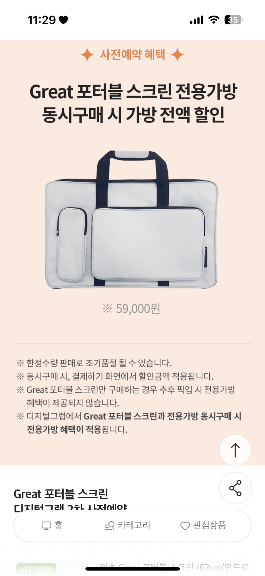 이마트 포터블 스크린 사전예약 499,000원 (일욜 밤 11시까지) 작성자여물어말포이|작성시간26.01.01|조회수7,619 목록 댓글 3 글자크기 작게가 글자크기 크게가 출처: 여성시대 여물어말포이http://emart.kr/tIE5nmigDhGreat 포터블 스크린 디지털그랩 2차 사전예약Great 포터블 스크린, 전용가방 동시구매 시 가방 전액 할인 혜택!eapp.emart.com:443이마트 포터블 스크린+전용가방까지 해서 499,000원 이번엔 3천명1차 때보다 수량 더 풀린거같긴한데저번에 실패한 여시 있으면 성공하길,, 다음검색 현재 게시글 추가 기능 열기 북마크 공유하기 신고 센터로 신고 댓글 댓글 3 댓글쓰기 답글쓰기 댓글 리스트 작성자제시카 알바 | 작성시간 26.01.02 와 이게 뭐야?! 신기하다 답댓글 작성자여물어말포이 작성자 본인 여부 작성자 | 작성시간 26.01.02 짭탠바이미 같은거야!! 답댓글 작성자제시카 알바 | 작성시간 26.01.02 여물어말포이 홀리몰리 알려줘서 고마워💖💖 댓글 전체보기