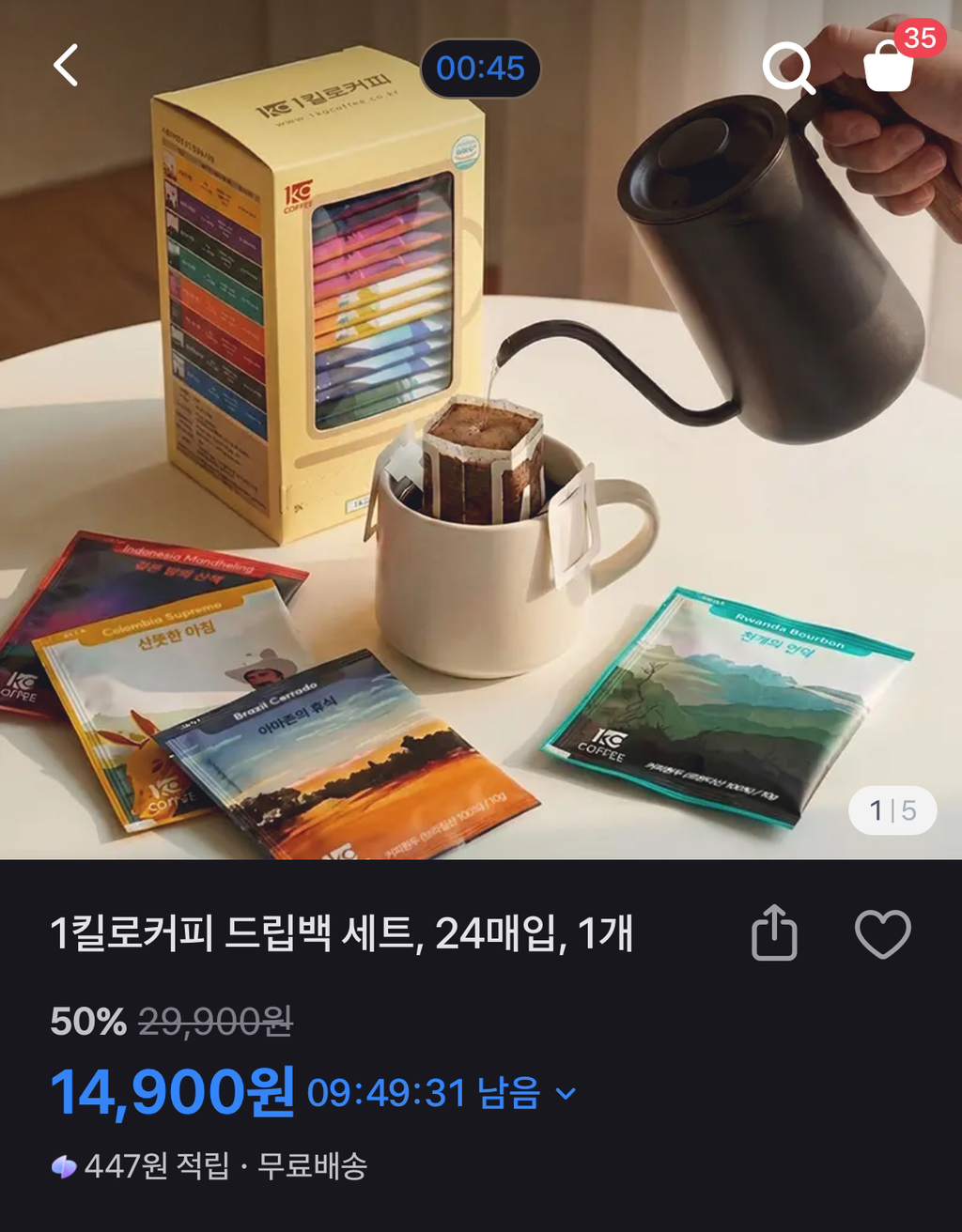 1킬로커피 드립백 세트, 24매입, 1개 50%할인, 14,900원