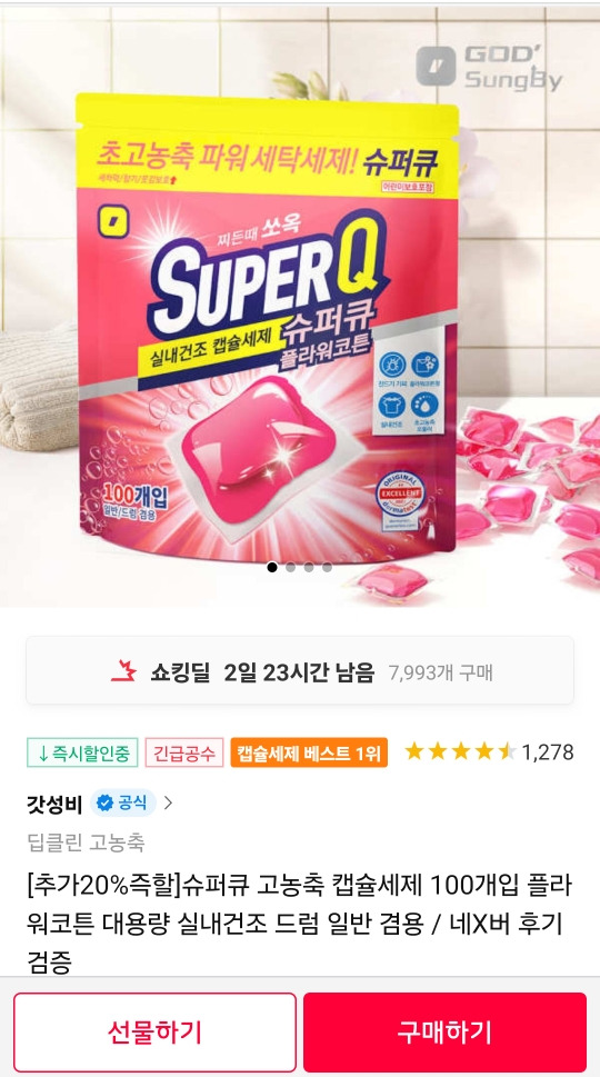캡슐세제 여시에서 보고 캡슐세제로 정착했는데