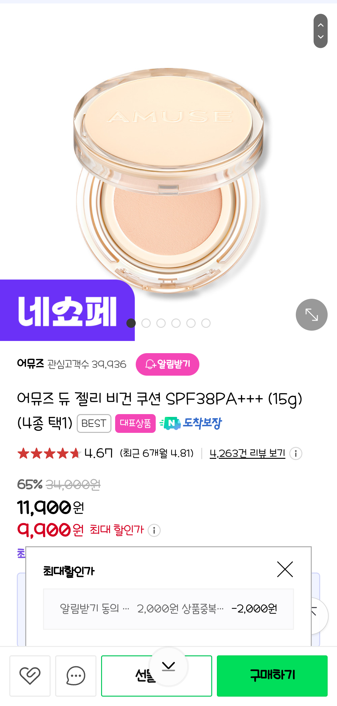 어뮤즈 듀젤리 비건 쿠션 9,900원(리뉴얼 전 제품) 작성자(본인 닉네임),|작성시간24.10.19|조회수10,044 목록 댓글 40 글자크기 작게가 글자크기 크게가 출처: 여성시대 (본인 닉네임),https://m.shopping.naver.com/window-products/beauty/5950542313?NaPm=ct%3Dm2fi1bko%7Cci%3Dshoppingwindow%7Ctr%3Dswhl%7Chk%3Daa04cd2f8f8278d279ff935542e0cfd1eb9d6da4%7Ctrx%3D이런 상품 어때요? 어뮤즈 듀 젤리 비건 쿠션 SPF38PA+++ (15g) (4종 택1)어뮤즈shopping.naver.com무료배송임알림받기 쿠폰 받아야해!리뷰쓰면 포인트도 꽤주니까 참고하기네쇼페 쿠폰 있는 사람은 더 할인될듯참고로 커버력 거의없고 자연스럽게 톤 맞추는거 선호하는 사람들한테 맞을듯 다음검색 현재 게시글 추가 기능 열기 북마크 공유하기 신고 센터로 신고 댓글 댓글 40 댓글쓰기 답글쓰기 댓글 리스트 작성자주식대박나게해주세효 | 작성시간 24.10.20 이거쓰면 피부 왜이렇게 좋냐 그러더라 작성자자나깨나당뇨조심 | 작성시간 24.10.20 대박 써보고싶었는데 고마워~! 바로샀다 작성자산맹구 | 작성시간 24.10.21 대박 좋은정보 고마워! 작성자슈슈슈버노바 | 작성시간 24.10.21 배송 진짜 빠르다 받았어 고마워!! 작성자Dsghvdr | 작성시간 24.10.21 21혼데 02누드쓰면 어두우려나 1.5 품절이네 댓글 전체보기