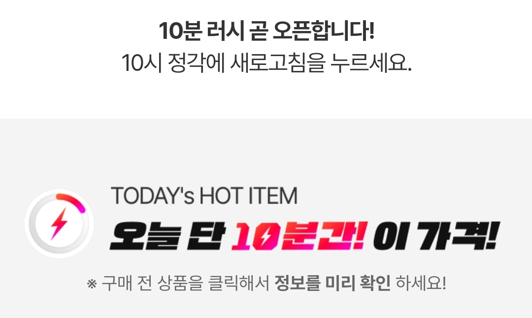 예전 티몬 10분어택처럼 10시오픈 10시10분까지 구매가능