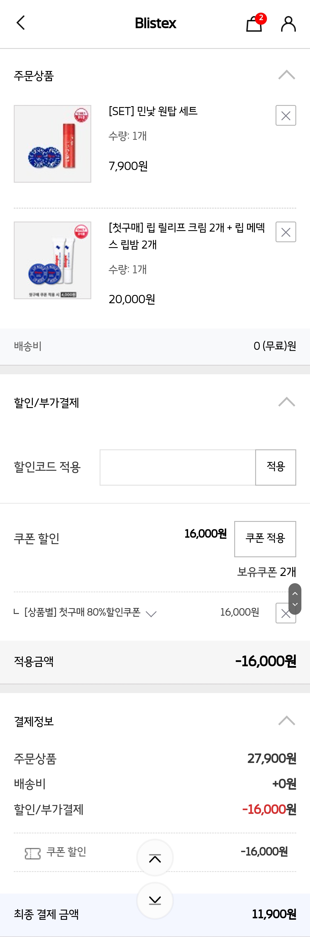 나는 단지립밤 2개랑 컬러립밤1개 7900원하길래 같이샀어