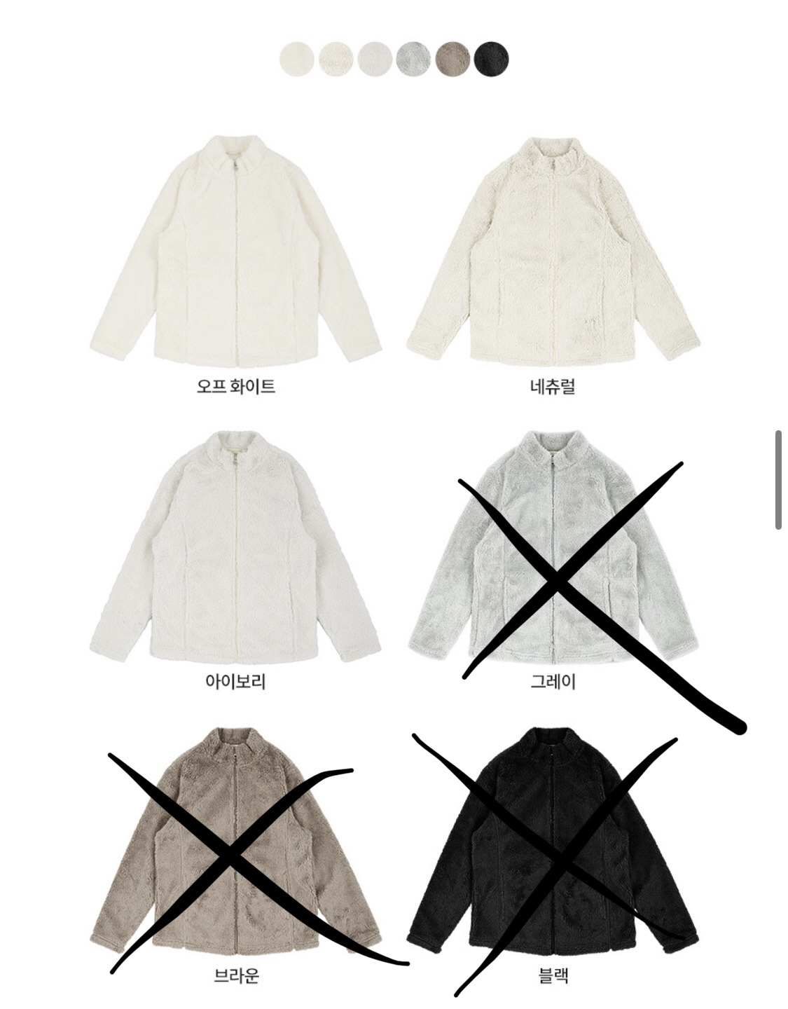 색깔은 화이트, 아이보리, 내추럴 남아있는데 입으면 다 비슷비슷할 것 같기도...