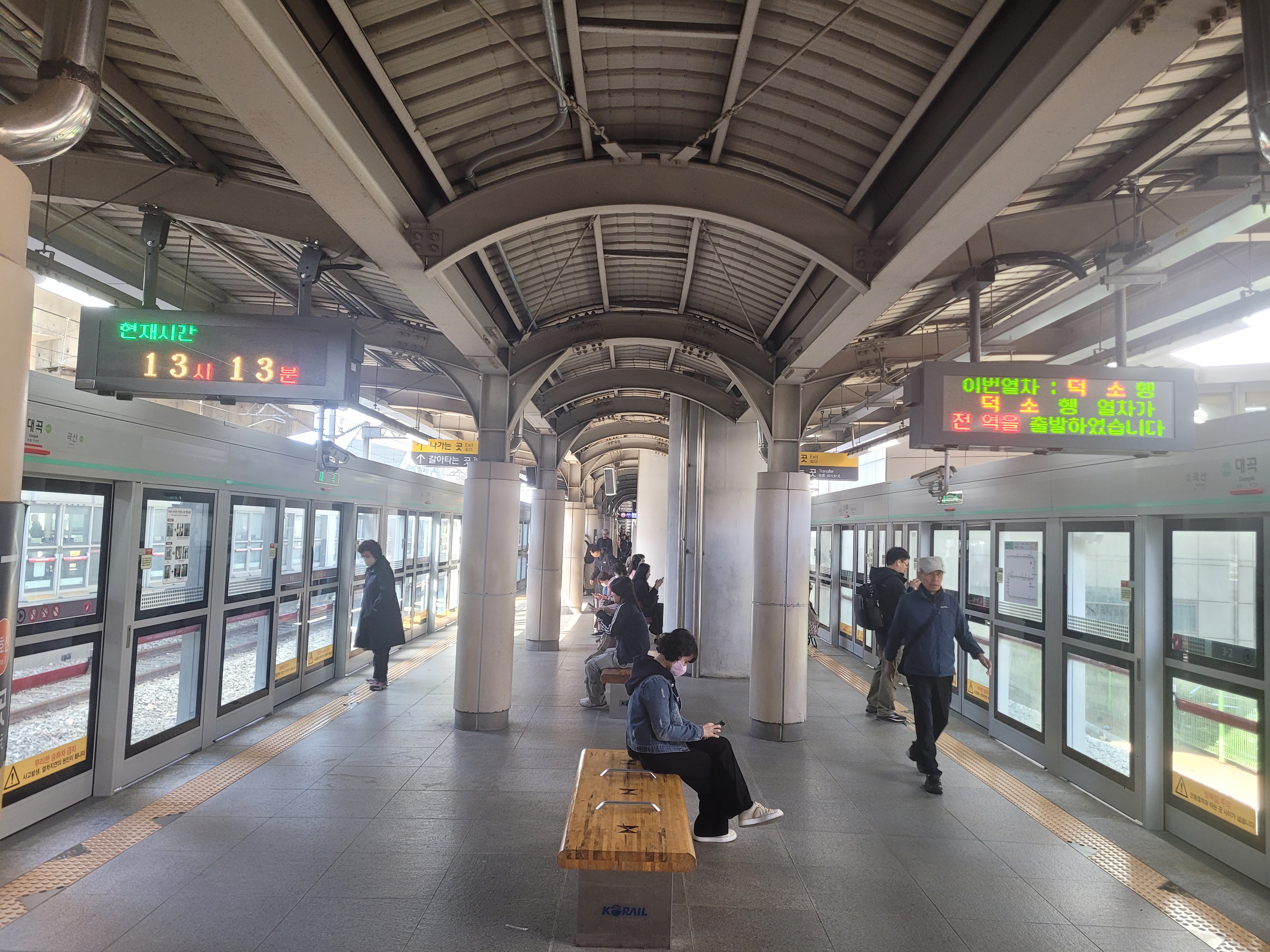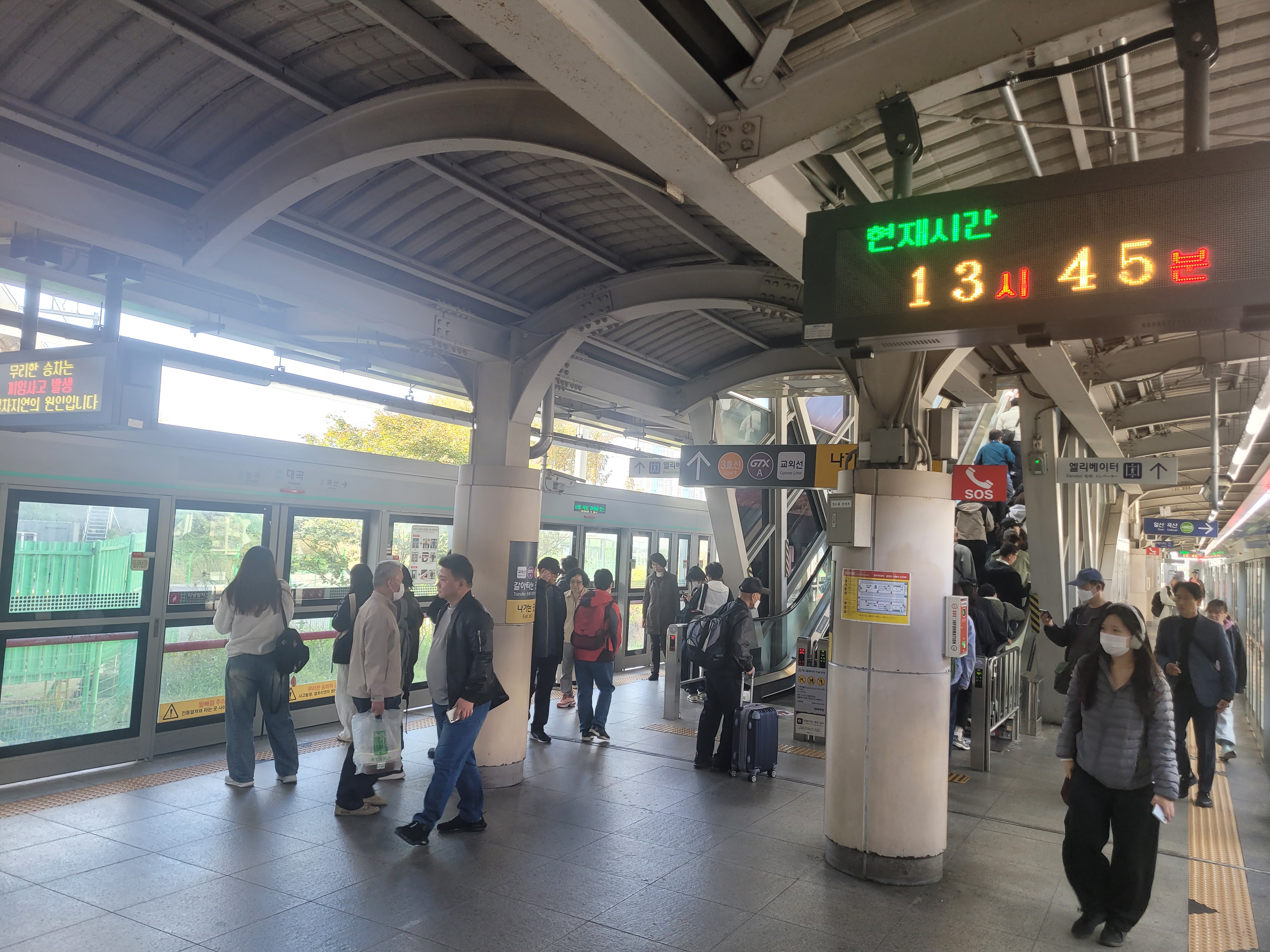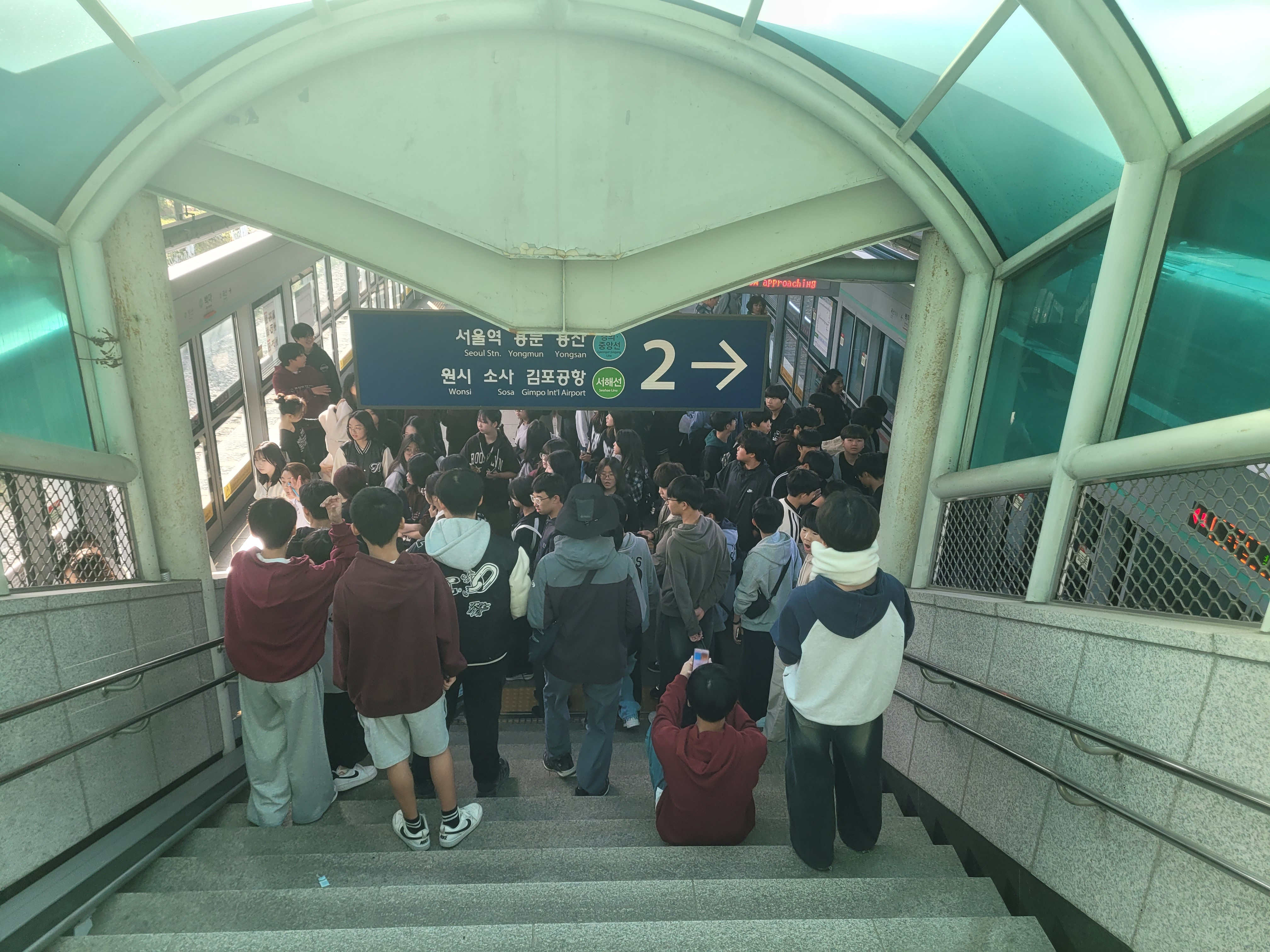 플랫폼에 중학생들이 무더기로 있는 것을 보았다