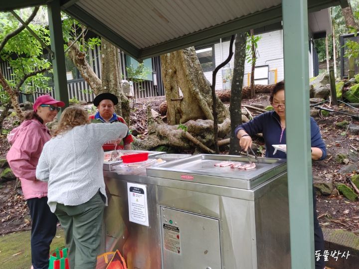 공원에는 고기를 구워먹을수있는 기계들이많았다 여행온사람들이 대부분고기사와서 구워서 먹는것겉았다