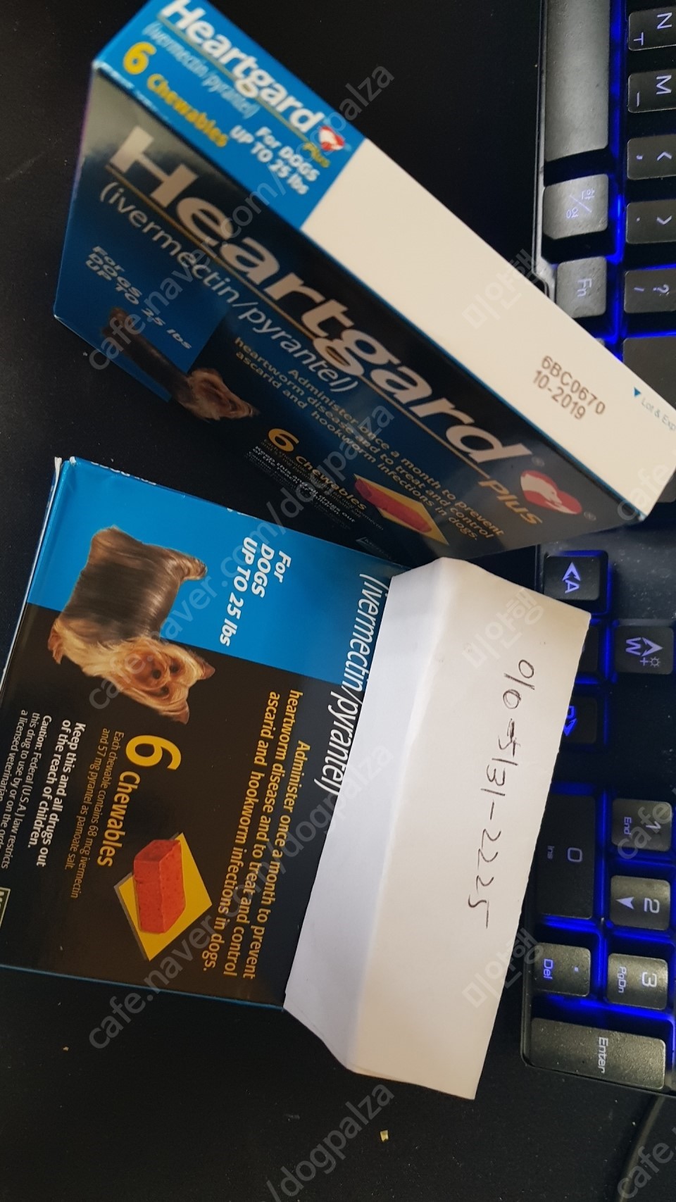 애견을 키우다가 분양하게 돼어 사뒀던 하트가드 12알(2각) 팝니다. 먼저 연락오시는분한테 팔겠습니다. 5시전까지 연락오시면 바로 우체국택배로 보내드립니다. 보낼때 사진찍어 문자 드립니다.방금 찍은사진입니다. 연락처 다 노출했구.치트키 같은데 검색해보세여 사기 아닙니다.각당45000에 삿던겁니다. 택패비 포함 7200원 입니다.010-5131-2225 빠른 연락주세여.