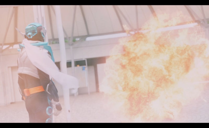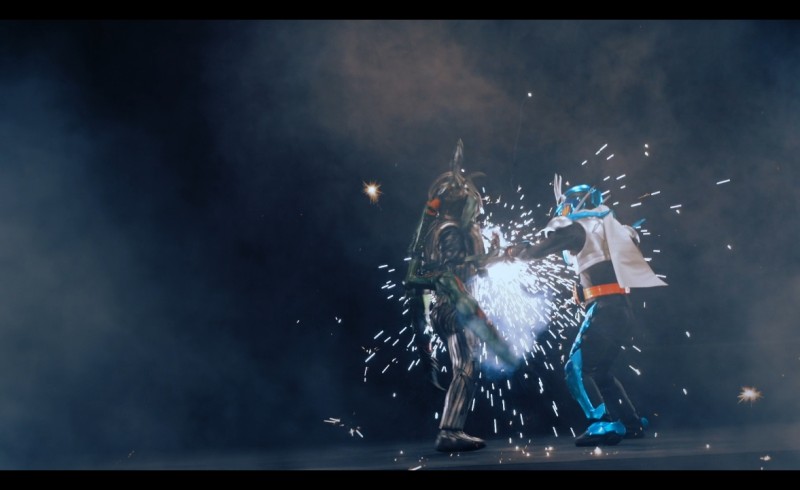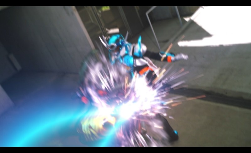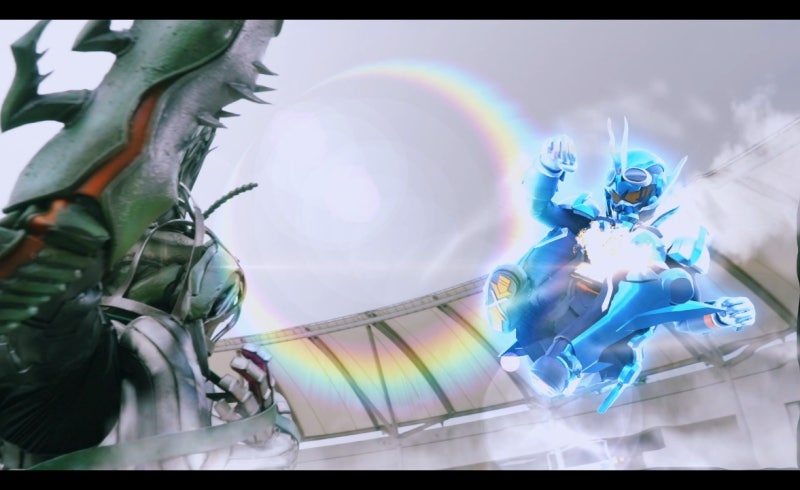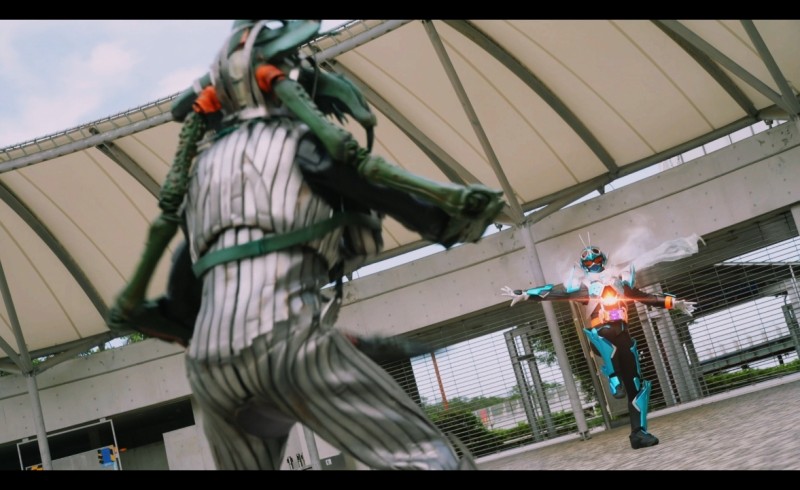 가볍고 빨라진 움직임으로 클로토와 전투를 시작 하는 가면라이더 갓챠드