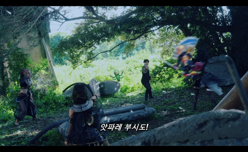아저씨는 명흑의 세 자매를 막아서며 호타로에게 드라이버를 부탁합니다. 드라이버를 빼앗기면 세계가 멸망한다는데