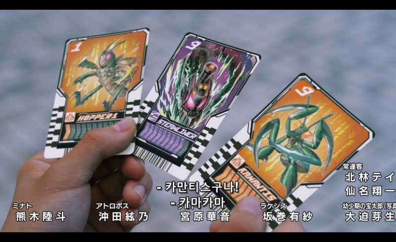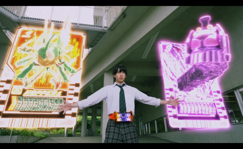 가면라이더 갓 드는 카드의 숫자 합이 10이 되 는 두 카드를 연성하여 변신하게 됩니다. 숫자 1의 호퍼와 숫자 9의 스팀 라이너가 연성되 어 스팀호퍼 와일드 모드가 완성되었습니다