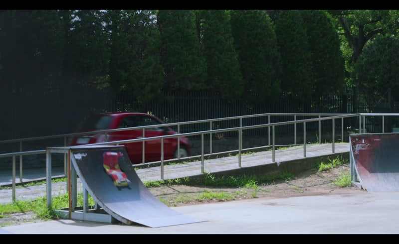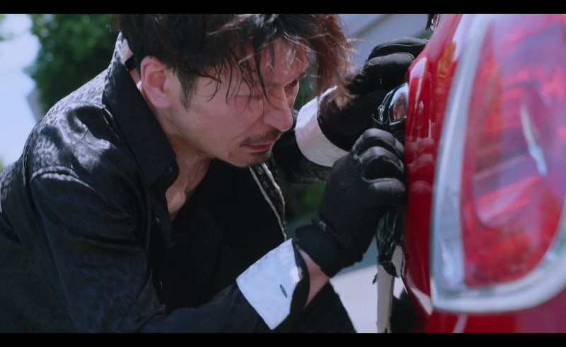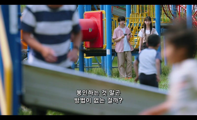 한편, 딱 봐도 강도처럼 보이는 2인조가 아이들 놀 이터 옆에서 차를 세우고 번호판을 가린 박스를 떼 어내는 중입니다. 아니... 이런 범죄자같은 짓을 남들 다 보는 탁 트 인 공간에서 하지 말라고
