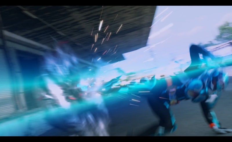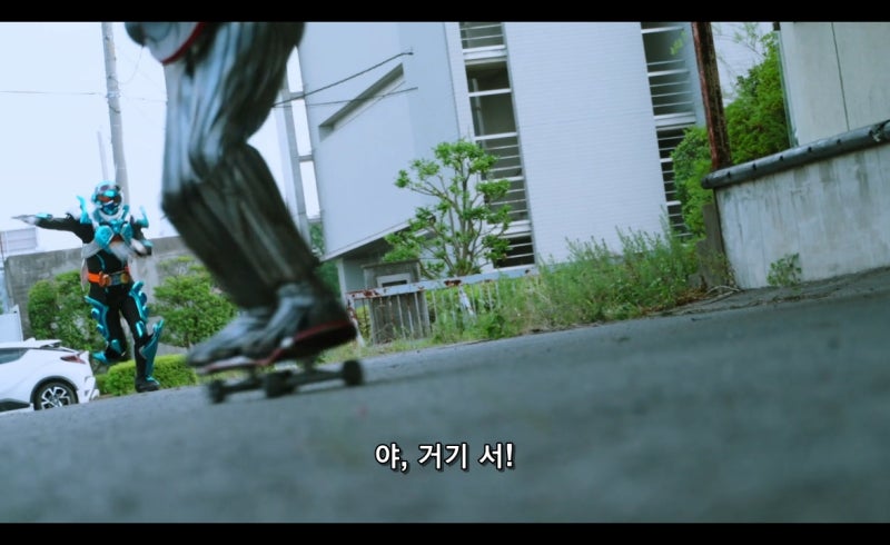 그런 두 사람의 뒤를 바라보는 신 캐릭터가 있었으 니... 이 친구도 대로변에서 저런 거대한 디바이스를 들 고 서있는 폼이 정체 감출 생각 따윈 애초에 없는 모양입니다