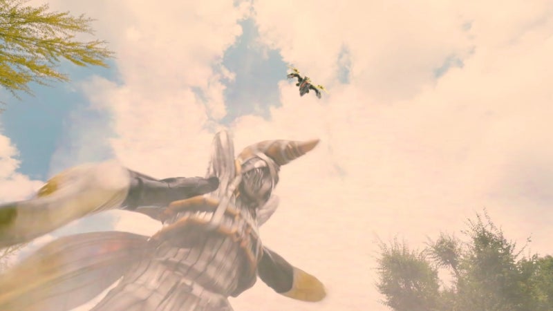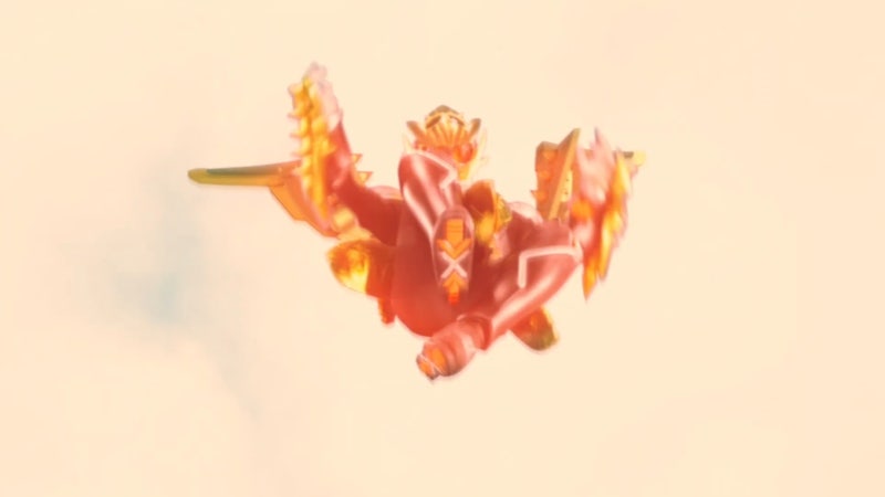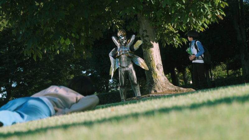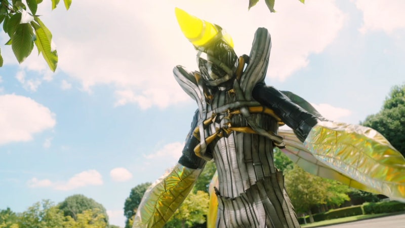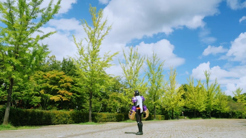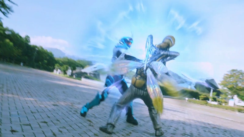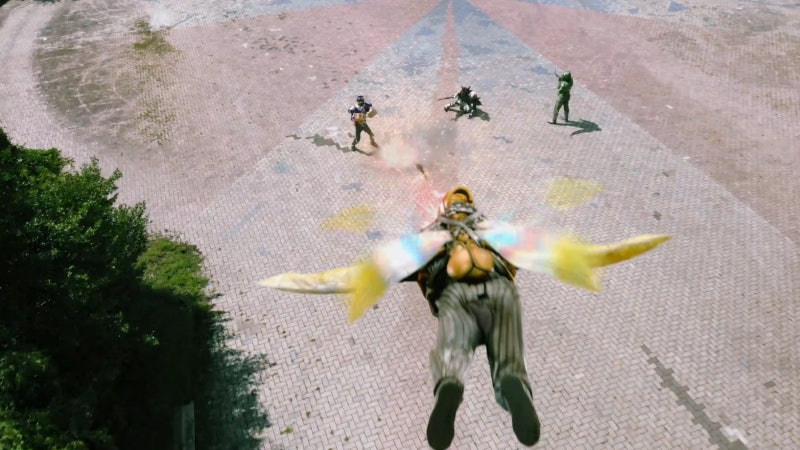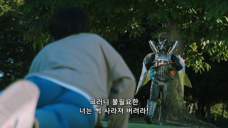 공중에서 변신이 풀려버린 호타로는 추락 직전에 간붸