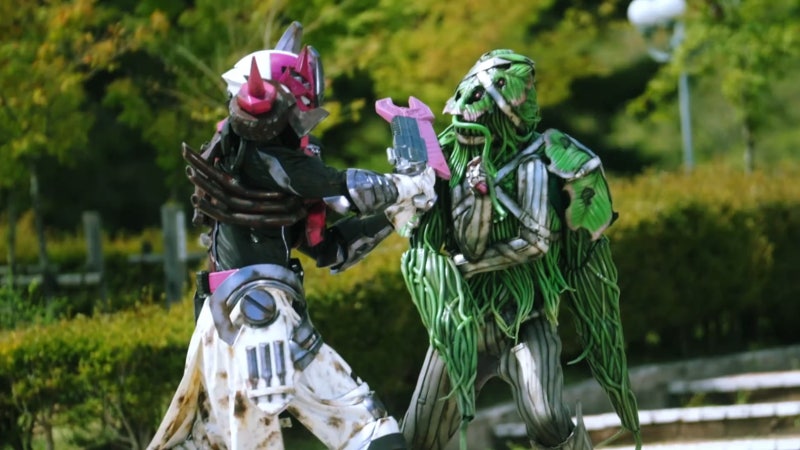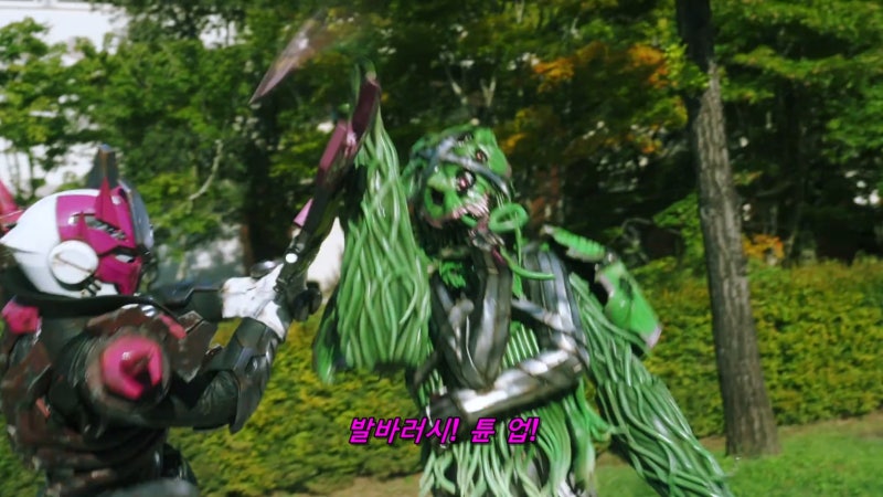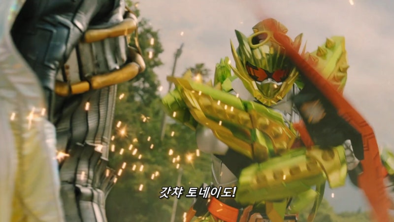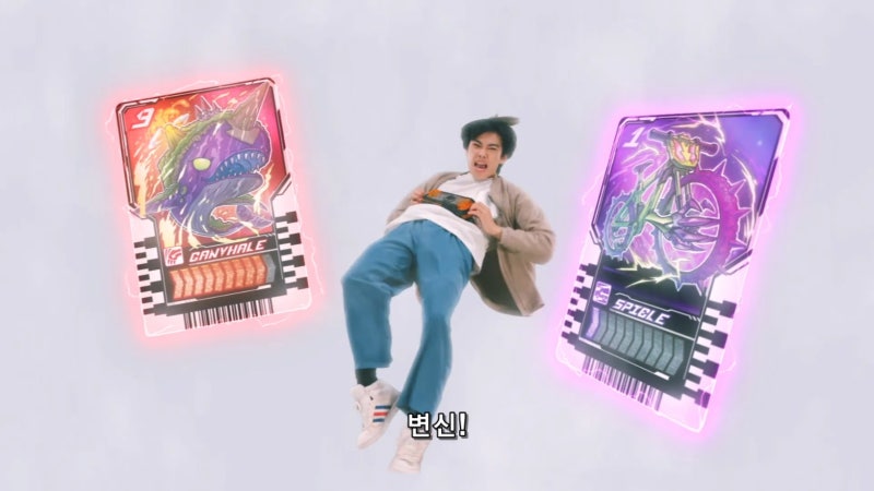 가면라이더 갓챠드와 말감의 대결은 더욱 뜨거워 집니다. 사보니들 카드로 가시 대결을 펼치는 두 사람
