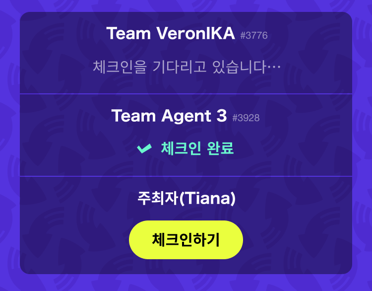 ## 체크인이란 양팀 모두 팀원들이 준비가 되었을때 하는것이에요