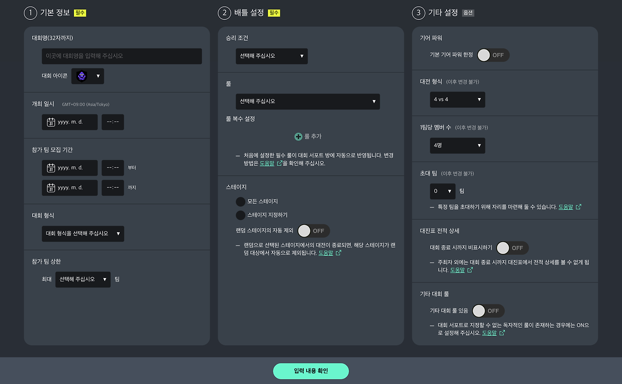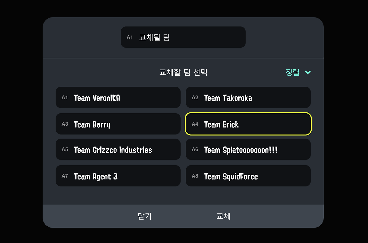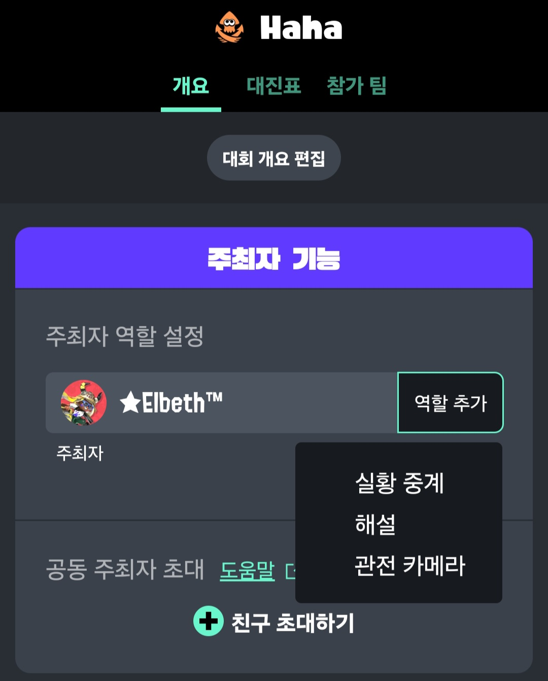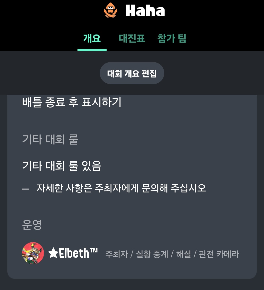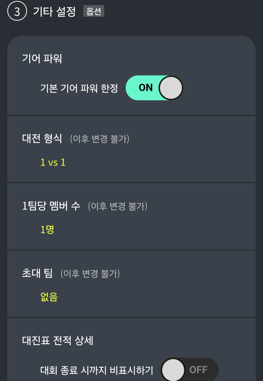 만약 모집 기간이 끝나서 참가 팀을 확정하게 된다면 모든 대회 기능을 편집할 수 없어요