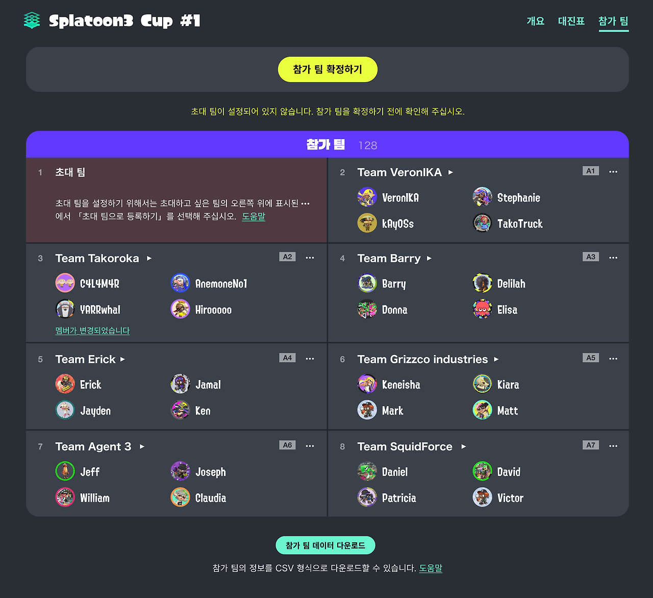 참가 팀이 확정되기 전까지는 수정할 수 있어요 하지만 이미 참가한 팀보다 낮은