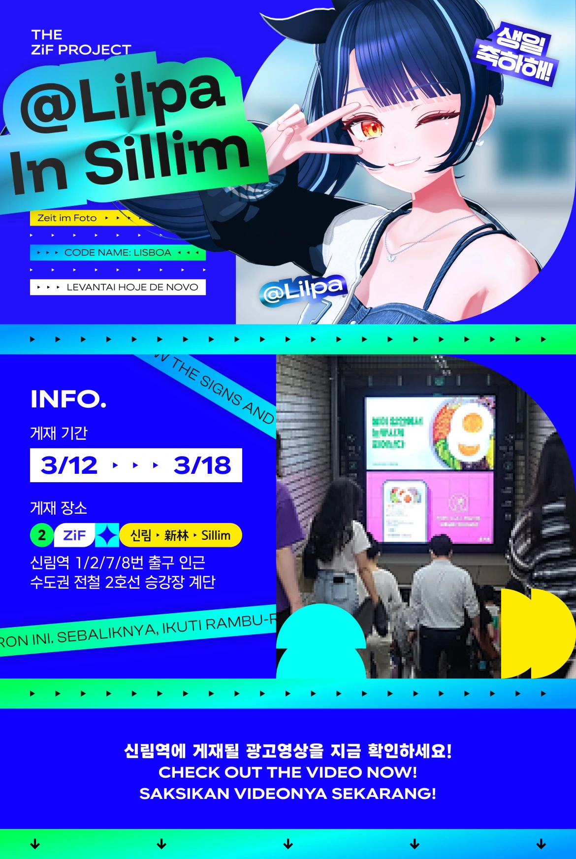 1/2/7/8번 출구 쪽 2호선 승강장 계단에서 해당 광고를 보실 수 있습니다.