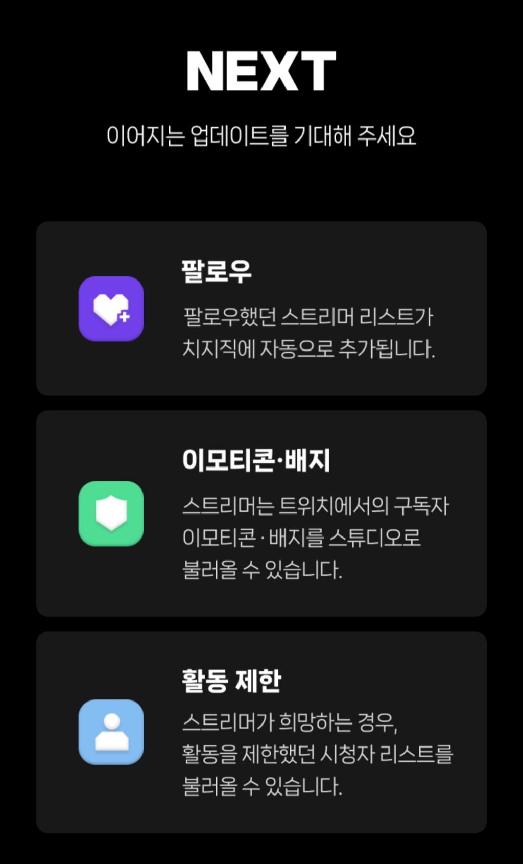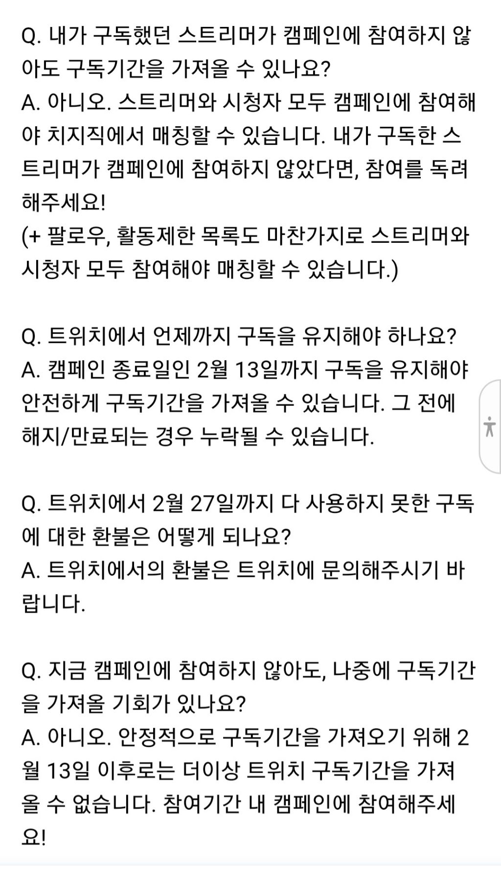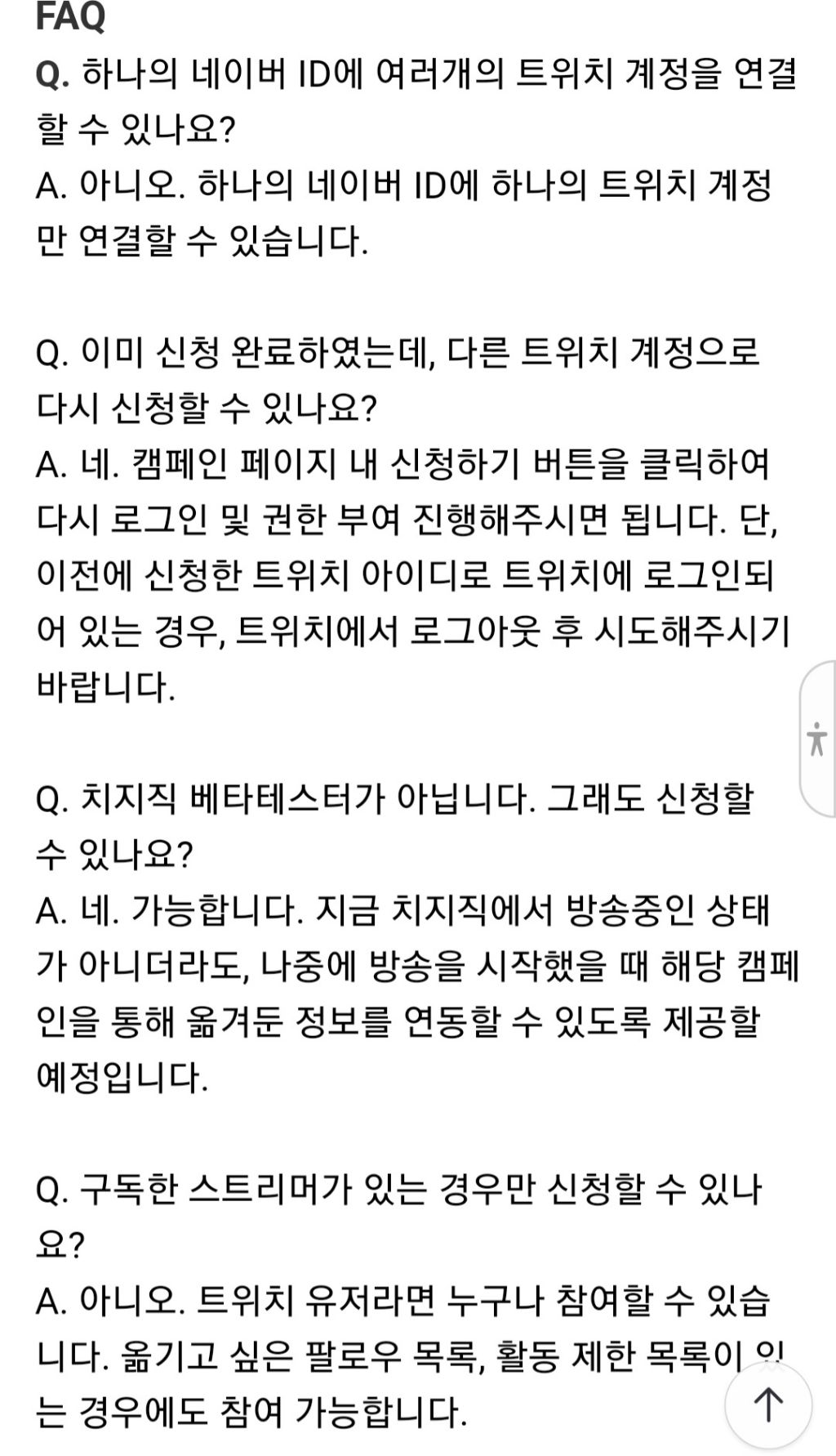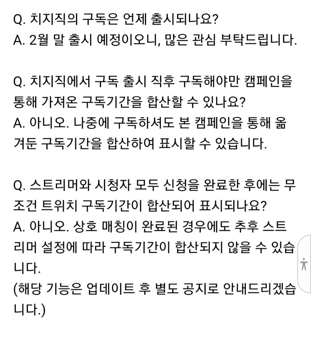 치지직 구독기간 이어가기(팔로우 포함) 작성자suji1201|작성시간24.01.09|조회수523 목록 댓글 0 글자크기 작게가 글자크기 크게가 이어갈 구독 기간이 없더라도 팔로우 목록을 이어가고 싶다면 신청하세요 나온 걸 보니 팔로우도 옮겨가나봐요..저는 신청완료!!♡♡https://naver.me/F0tmbrJx치지직-트위치 구독기간 이어가기 캠페인이 시작되었습니다! : 치지직치지직-트위치 구독기간 이어가기 캠페인이 시작되었습니다! : 치지직game.naver.com 다음검색 현재 게시글 추가 기능 열기 북마크 공유하기 신고 센터로 신고 댓글 댓글 0 댓글쓰기 답글쓰기 댓글 리스트