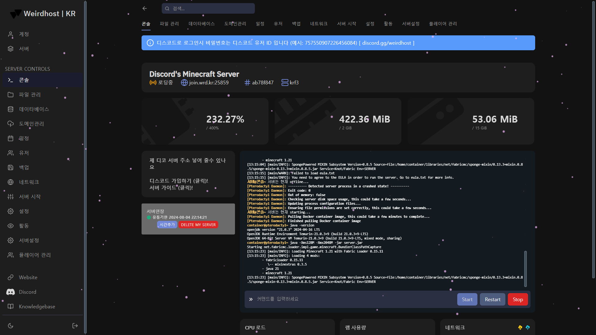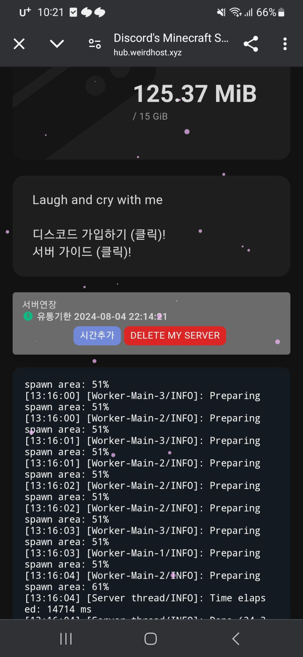 얘는 시간 연장을 눌러줘야하는데 한번에 2일정도씩 늘어나서 널널하고 핸드폰으로 로그인하시면 껐다켰다나 콘솔창 이용하는거도 다 될거같아요.