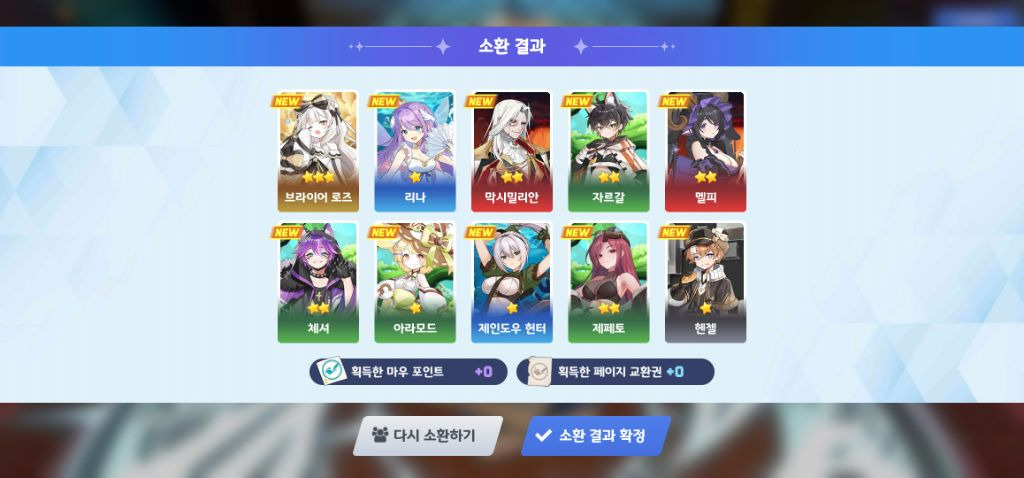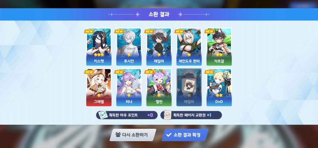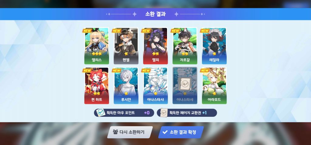 이렇게 초반 스토리가 끝나고 캐릭터를 뽑을 수 있는 기회를 주는데 이게 베타라서 그런건지 모르겠지만 원할 때까지 다시 뽑게 해줬어요