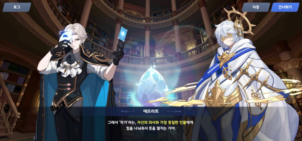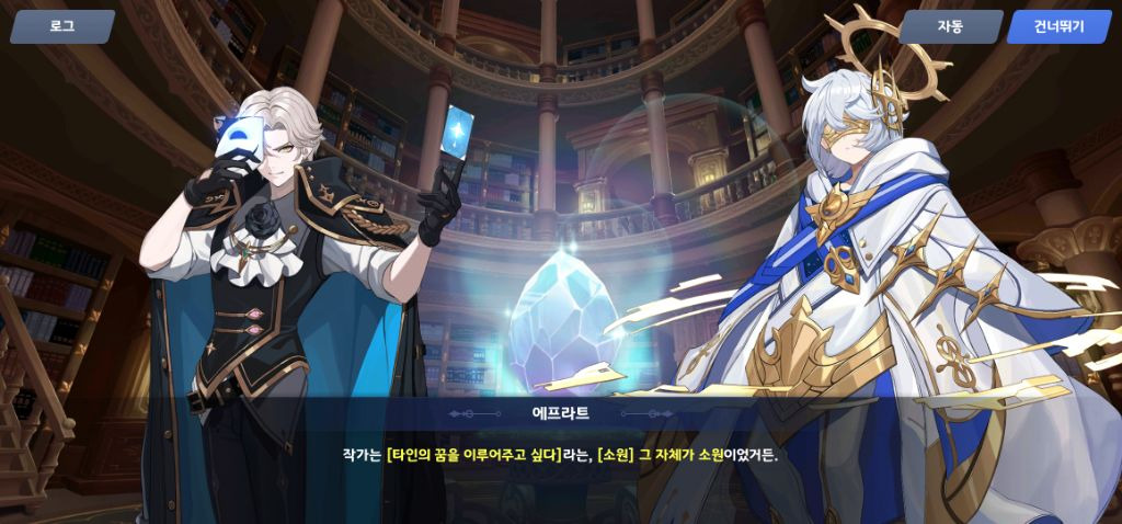 또! 도서관이라는 탭에서 스토리를 볼 수 있는데 이게 보상도 줘요,, 그래서 다 본 스토리도 다시 봐야한다는거,,, 네? 스킵이 있지않냐구요? 몇개만 있고 몇개는 그냥 오토로 돌려야함,,,ㅎㅋㅋ 아무리 오토가 된다해도 시간이 걸린단말이죠,,, 스킵기능을 좀 잘 써줬으면,,