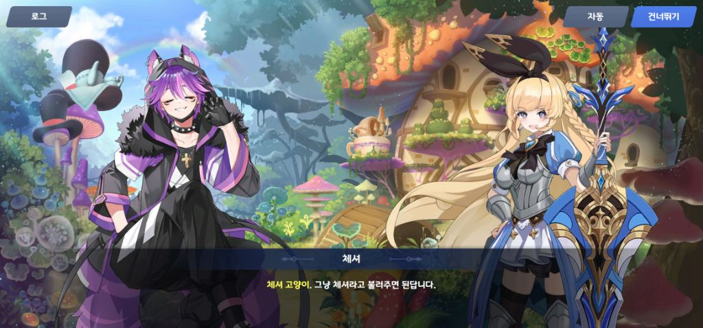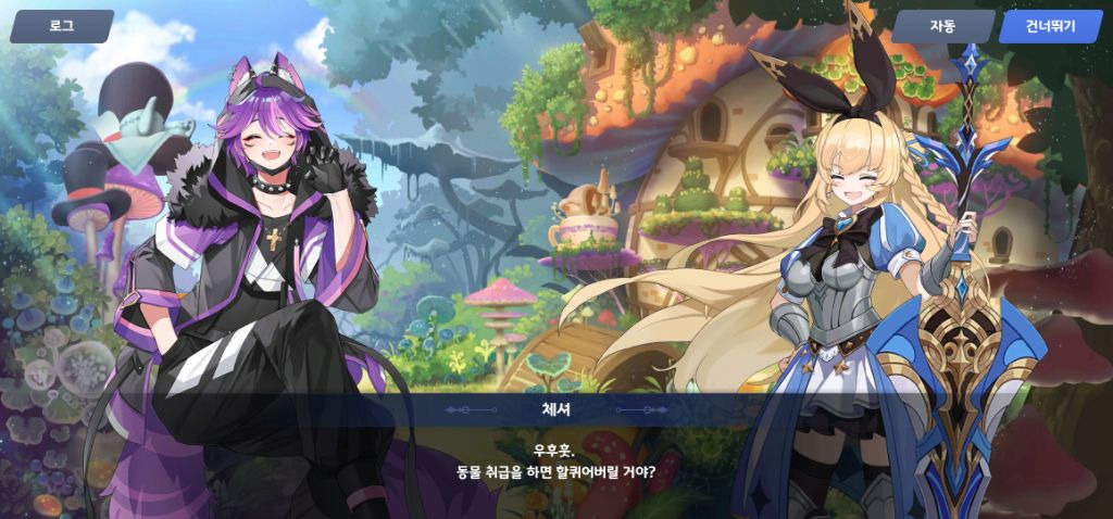 게임 시작화면! 캐릭 일러들은 다 이쁘더라구요,,,