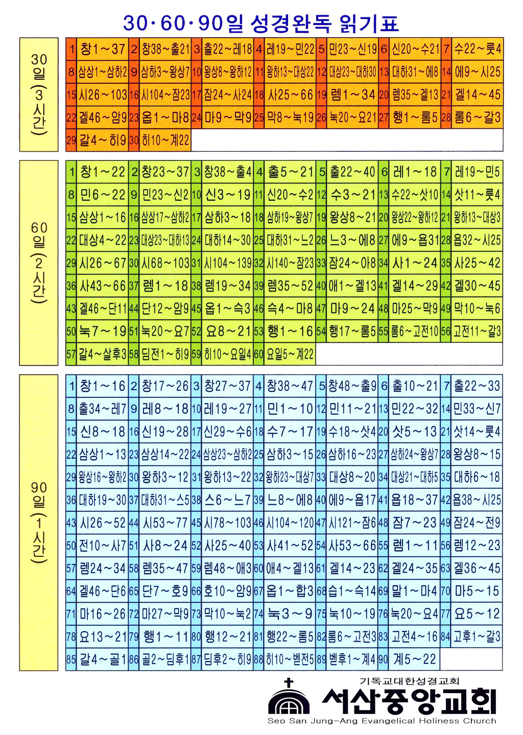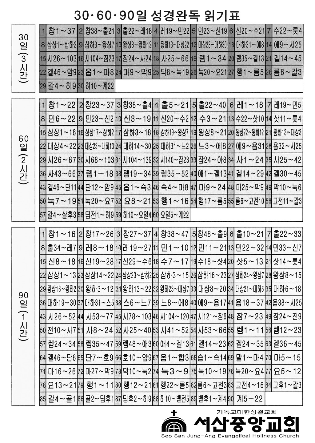 성경완독읽기표(30일 60일 90일용) 작성자김상수|작성시간13.08.30|조회수953 목록 댓글 0 글자크기 작게가 글자크기 크게가 성경읽기표 입니다. 다운받으셔서 사용하시면 됩니다. 성경을 많이 읽는 성도가 되시기 바랍니다. 성경읽기표 칼라.jpg 성경읽기표 흑백.jpg 첨부파일첨부된 파일이 4개 있습니다. jpg 파일 성경읽기표 칼라.jpg 다운로드 jpg 파일 성경읽기표 흑백.jpg 다운로드 jpg 파일 성경읽기표 칼라.jpg 다운로드 jpg 파일 성경읽기표 흑백.jpg 다운로드 다음검색 현재 게시글 추가 기능 열기 북마크 신고 센터로 신고 댓글 댓글 0 댓글쓰기 답글쓰기 댓글 리스트