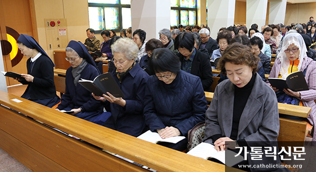 2019년 11월 9일 수원교구 제1대리구 조원동주교좌성당에서 봉헌된 교구 연령회연합회 합동위령미사에 앞서 신자들이 연도를 바치고 있다. 연도를 바치는 이들은 하느님께서 주시는 새 희망 속에서 죽을 때까지 주님을 찬미하겠다고 맹세하게 된다. 가톨릭신문 자료사진