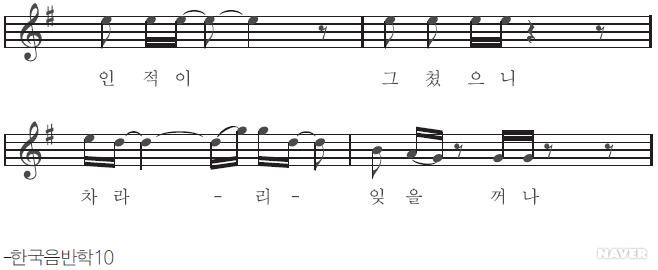 [띠리 띠리 띠리 리리리 리리 아니 놀지는 못하리라] |