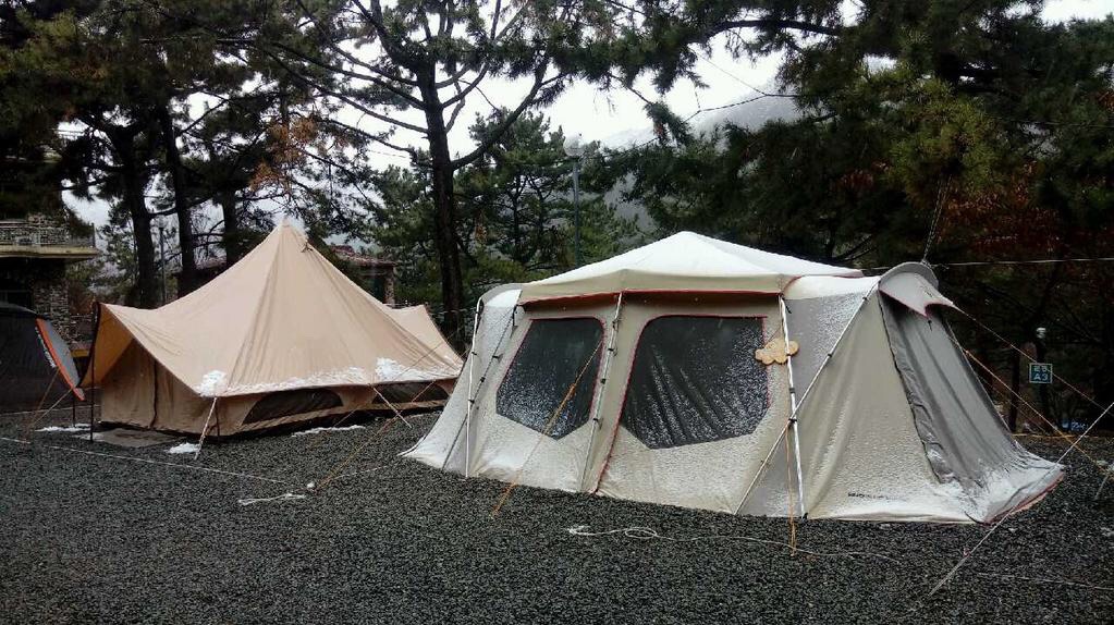 주기적으로 텐트 위 눈을 제거하고 있습니다!!