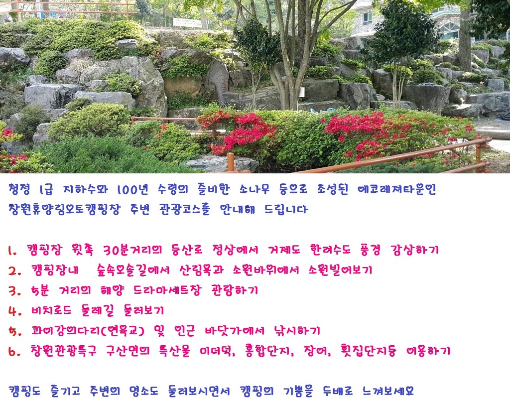 [[공지사항]]캠핑장주변 관광코스 안내 작성자창원휴양림오토캠핑|작성시간16.05.25|조회수4,515 목록 댓글 0 글자크기 작게가 글자크기 크게가 다음검색 현재 게시글 추가 기능 열기 북마크 공유하기 신고 센터로 신고 댓글 댓글 0 댓글쓰기 답글쓰기 댓글 리스트