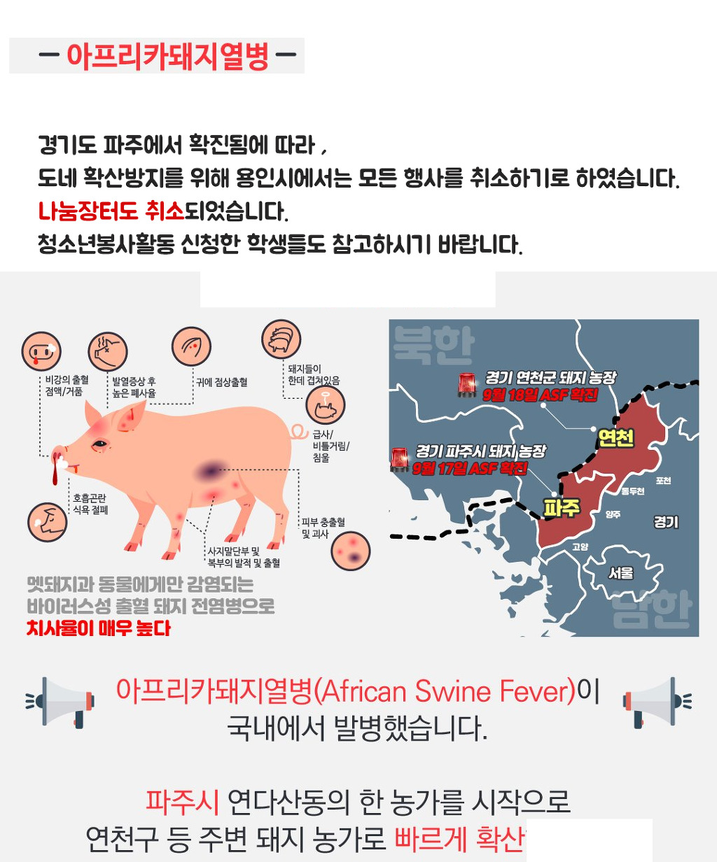 9/28 수지나눔장터는 아프리카돼지열병 확산 방지로 취소되었습니다. 작성자miae|작성시간19.09.26|조회수110 목록 댓글 0 글자크기 작게가 글자크기 크게가 다음검색 현재 게시글 추가 기능 열기 북마크 공유하기 신고 센터로 신고 댓글 댓글 0 댓글쓰기 답글쓰기 댓글 리스트